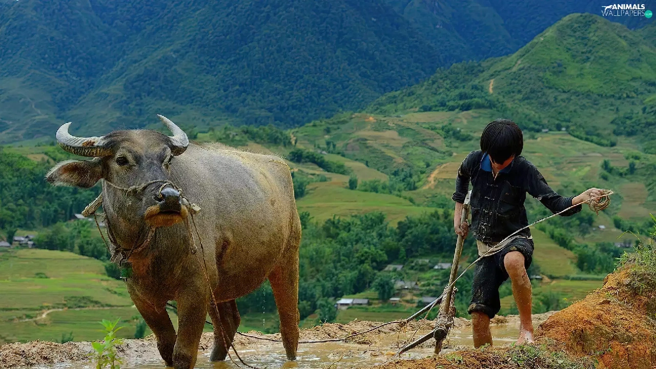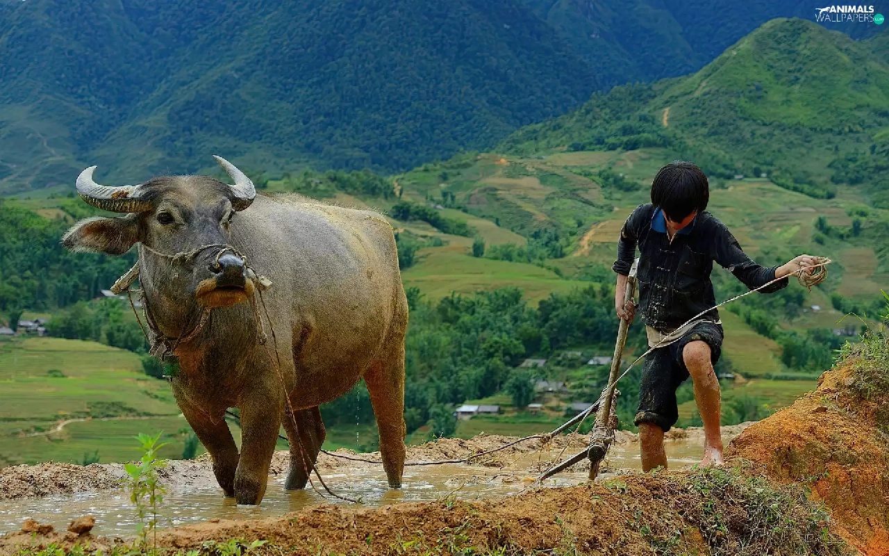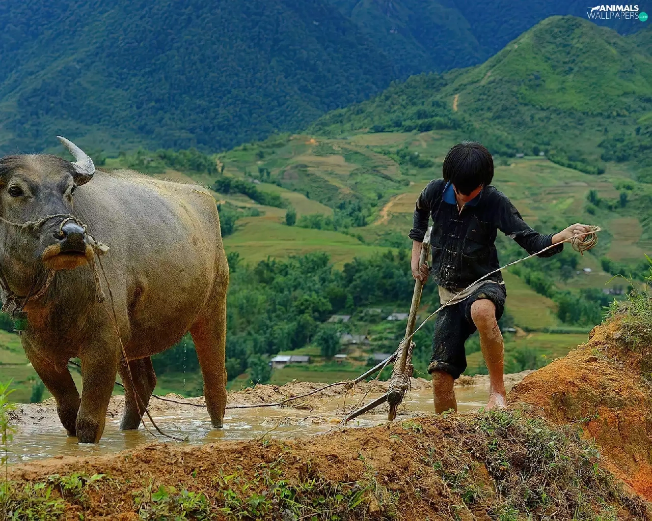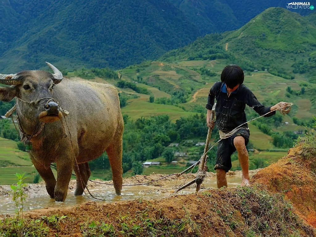 a man, Mountains, whale killer, buffalo