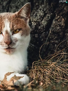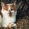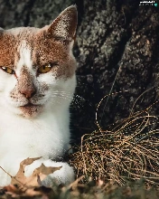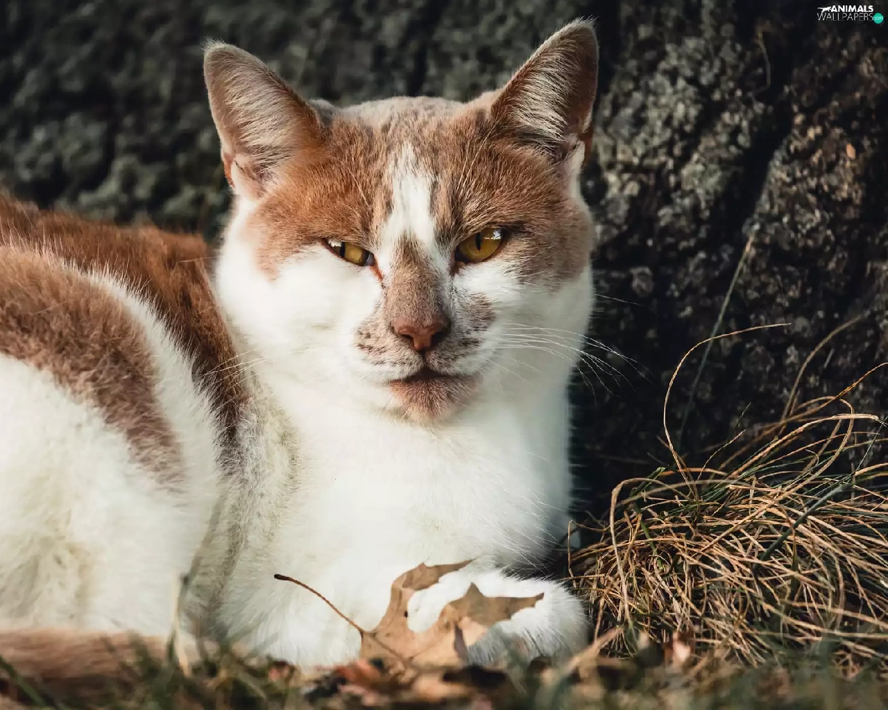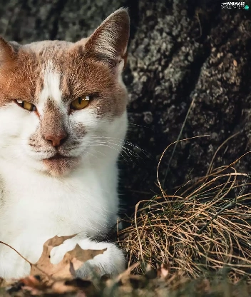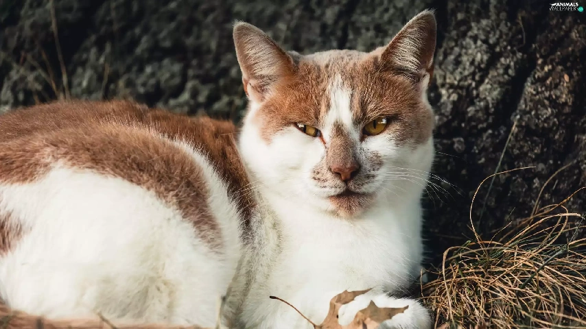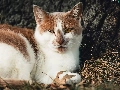lying, white and red, cat