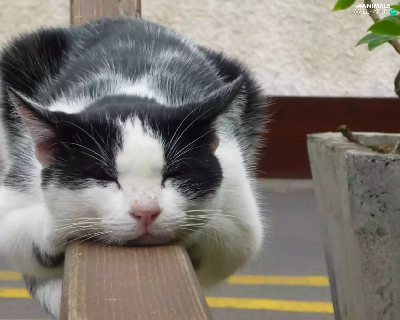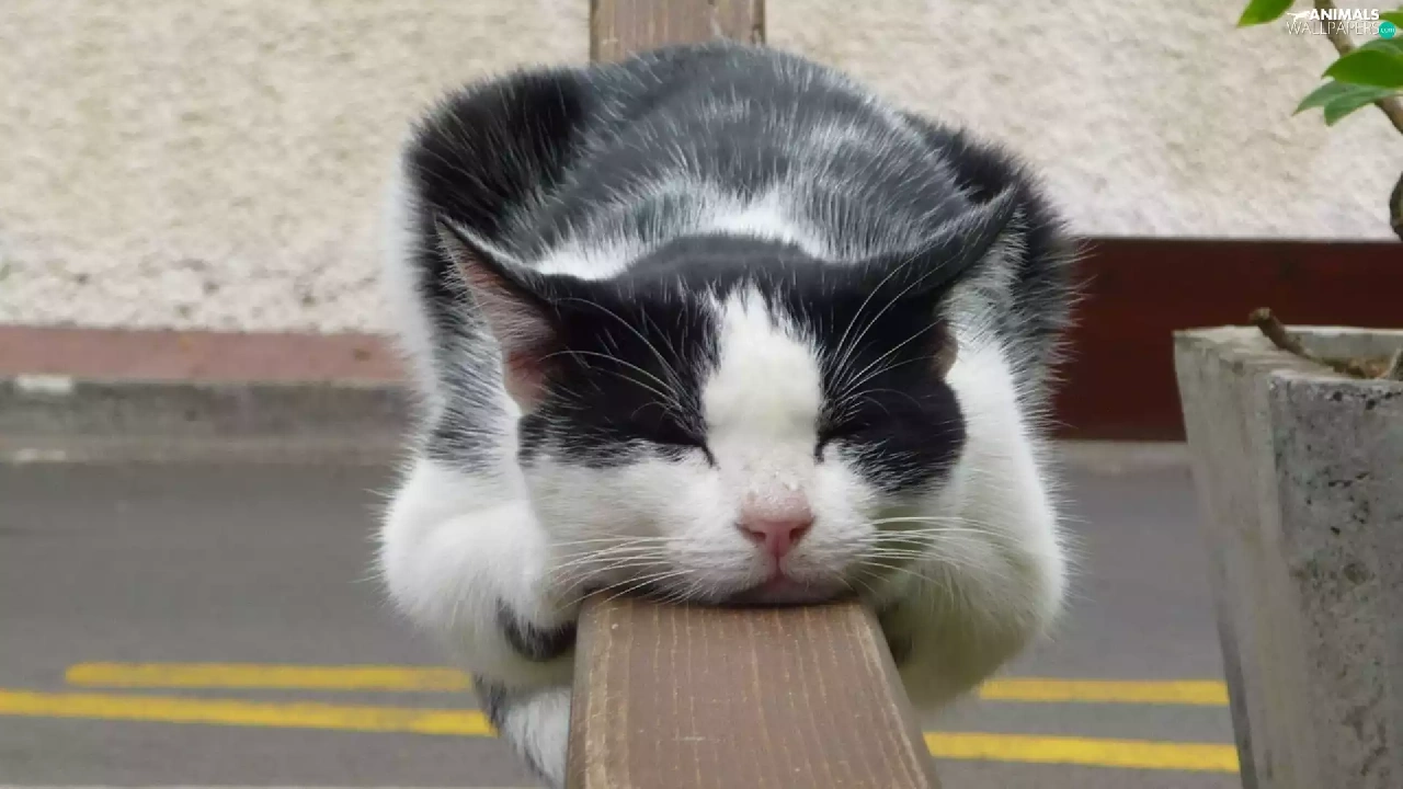 dream, hand-rail, White, cat, black