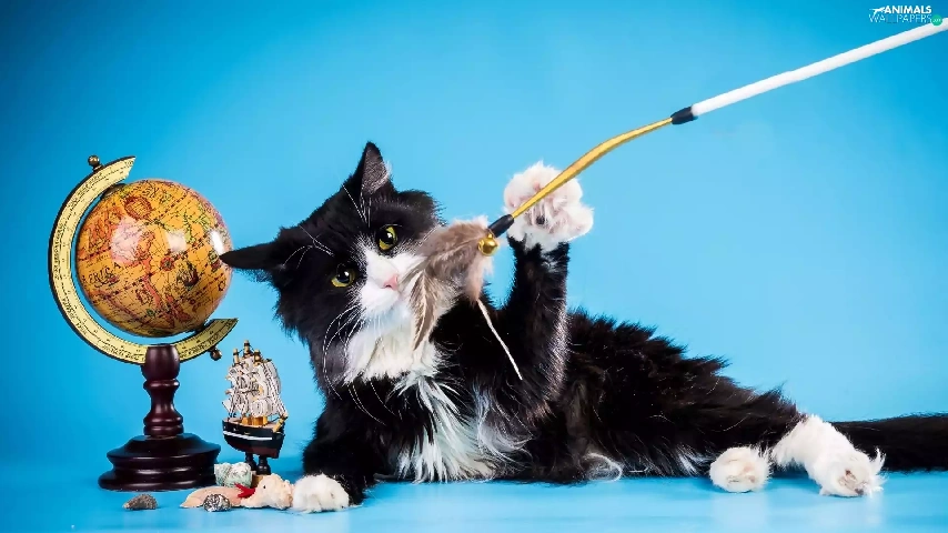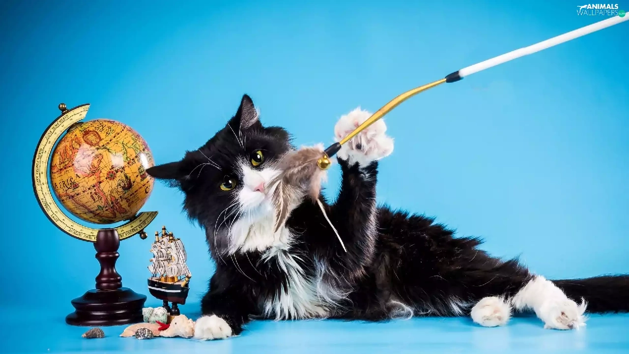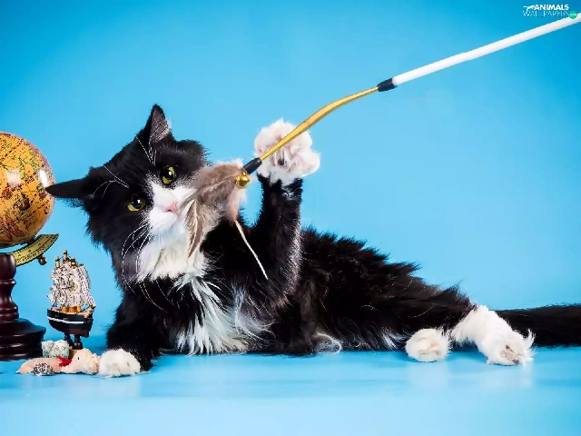 black, cat, toys, White