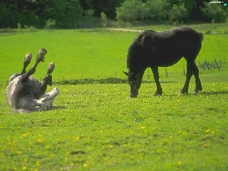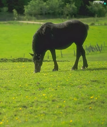 Black, White, bloodstock, Meadow, Horse
