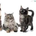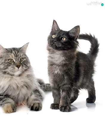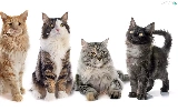 four, Maine Coon, white background, cats