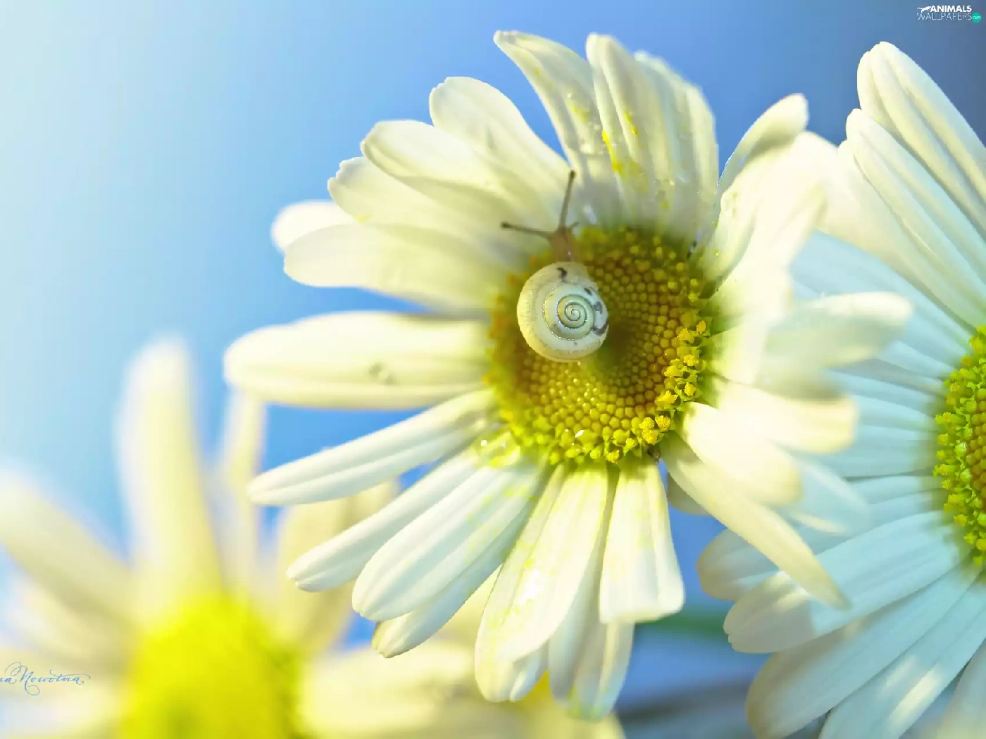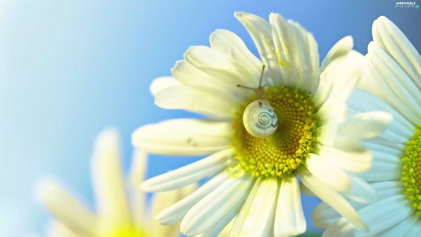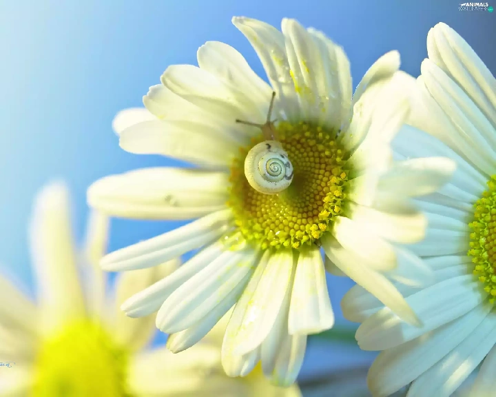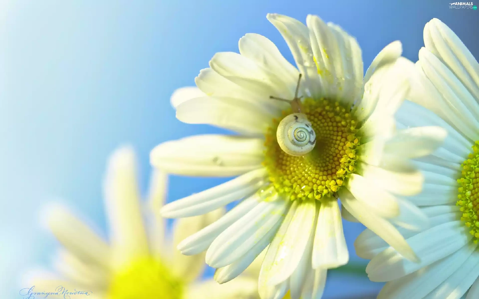 daisy, Flowers, snail, White