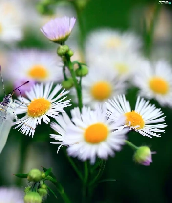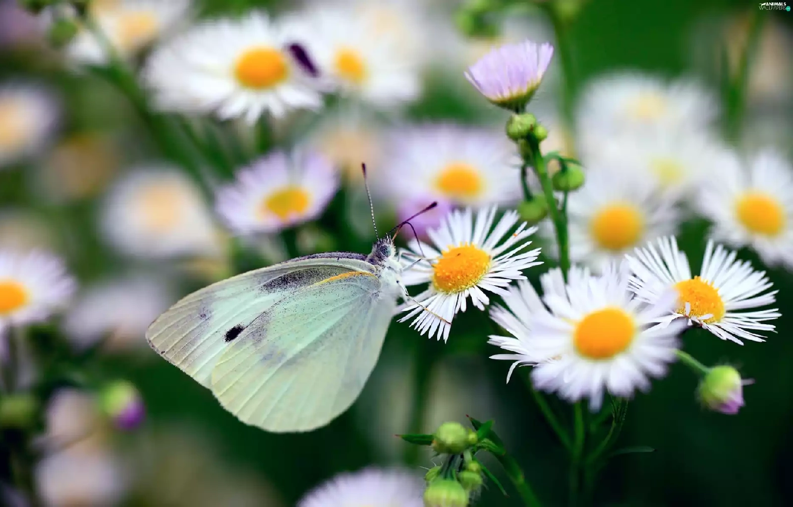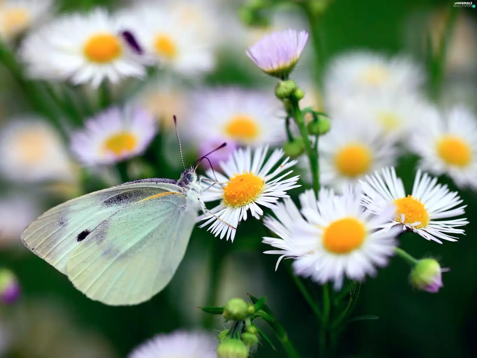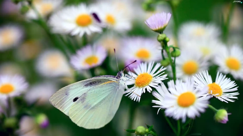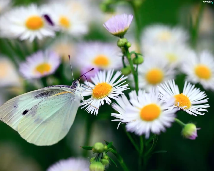 Erigeron, butterfly, Cabbage, White