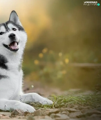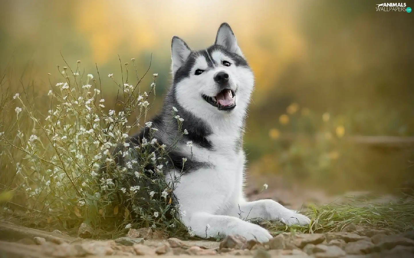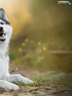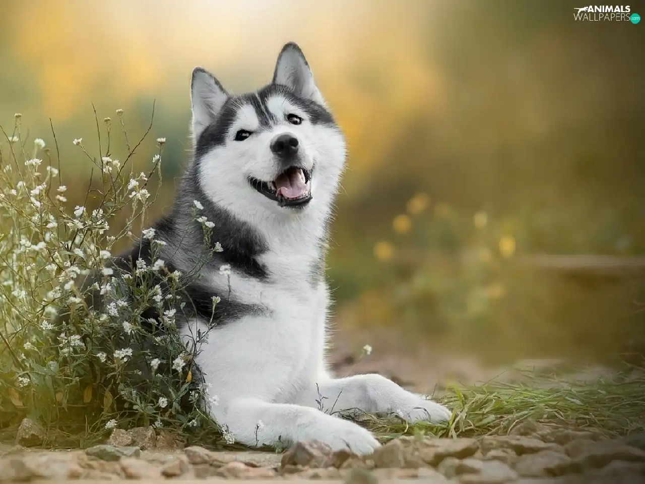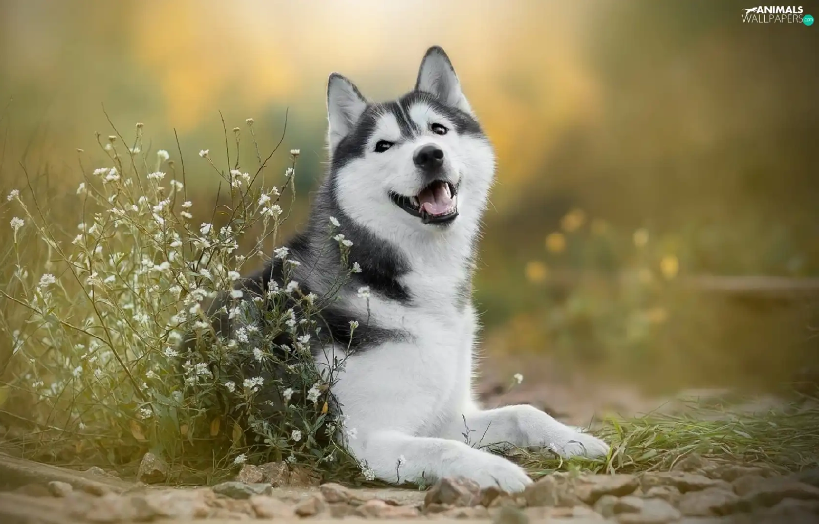 dog, White, Flowers, Siberian Husky