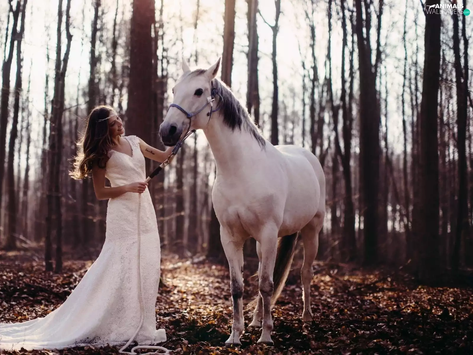 dress, ##, forest, white, Women, Horse, Leaf
