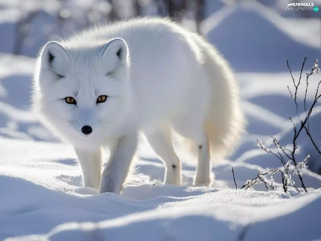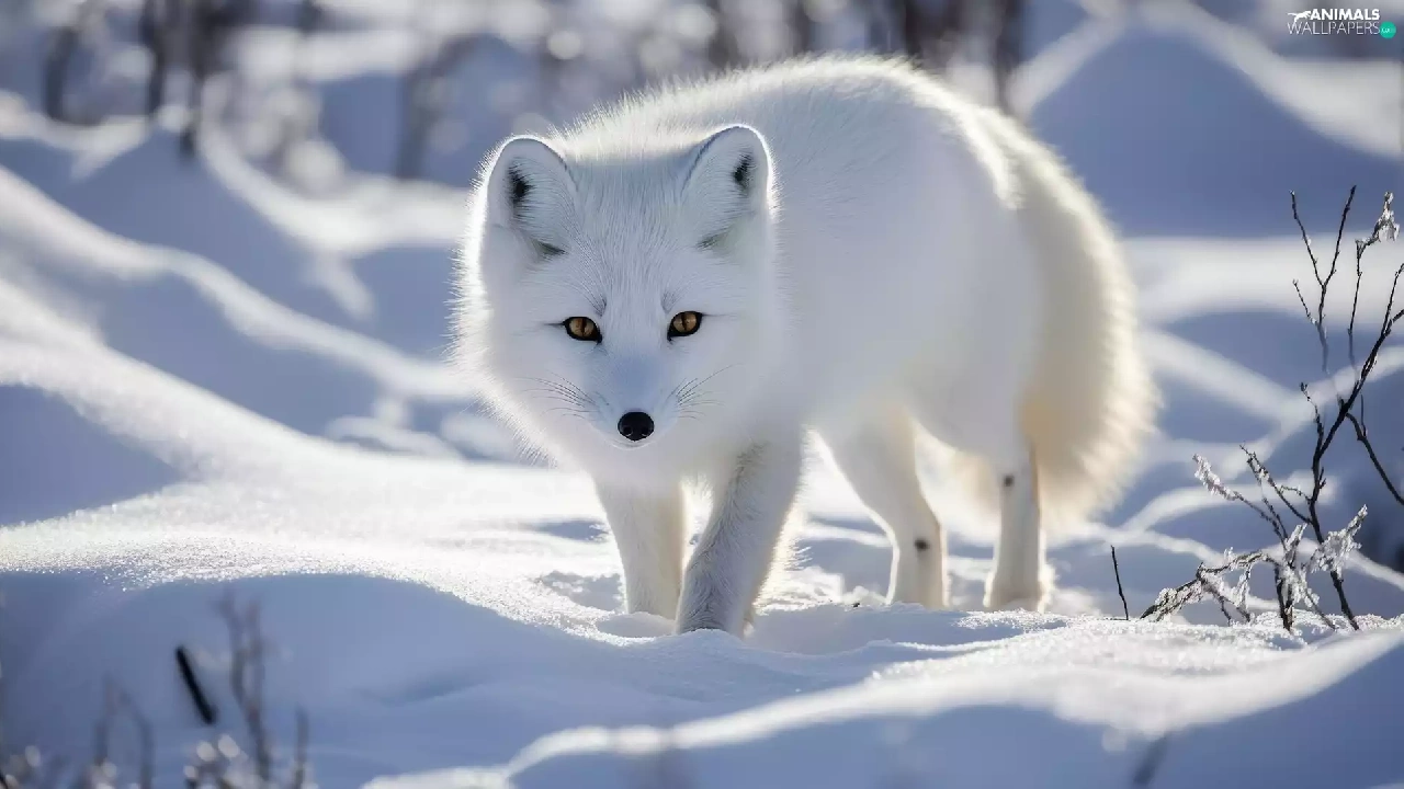 Fox, polar, snow, White