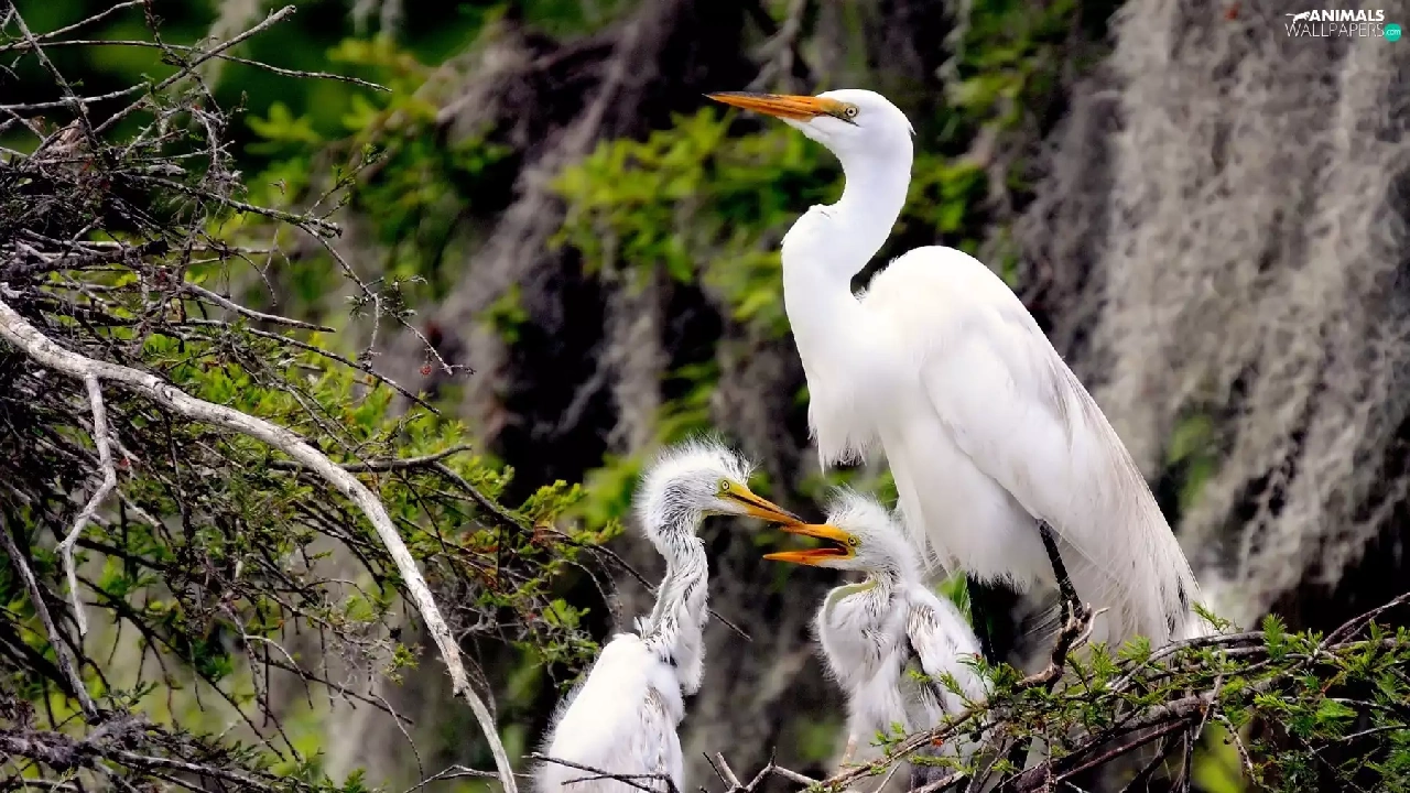 heron, young, nest, White