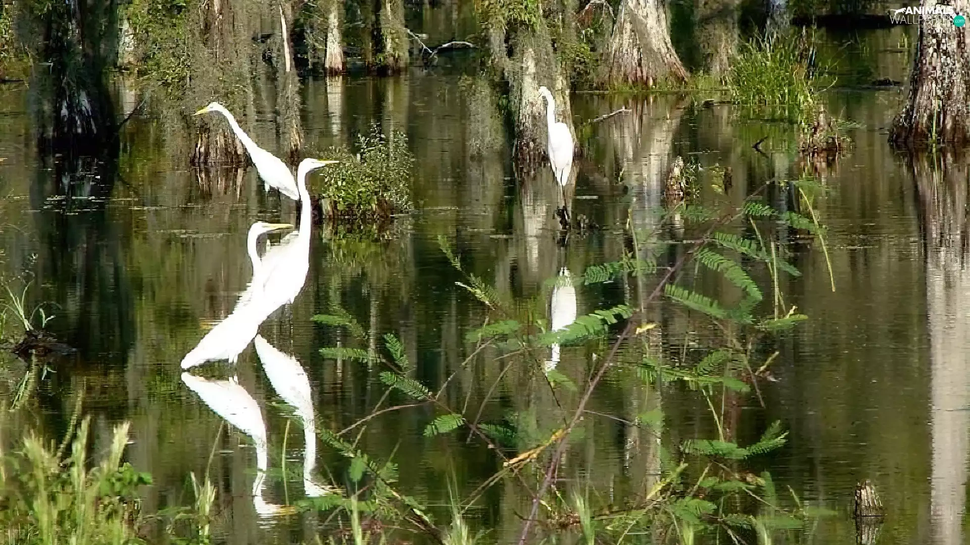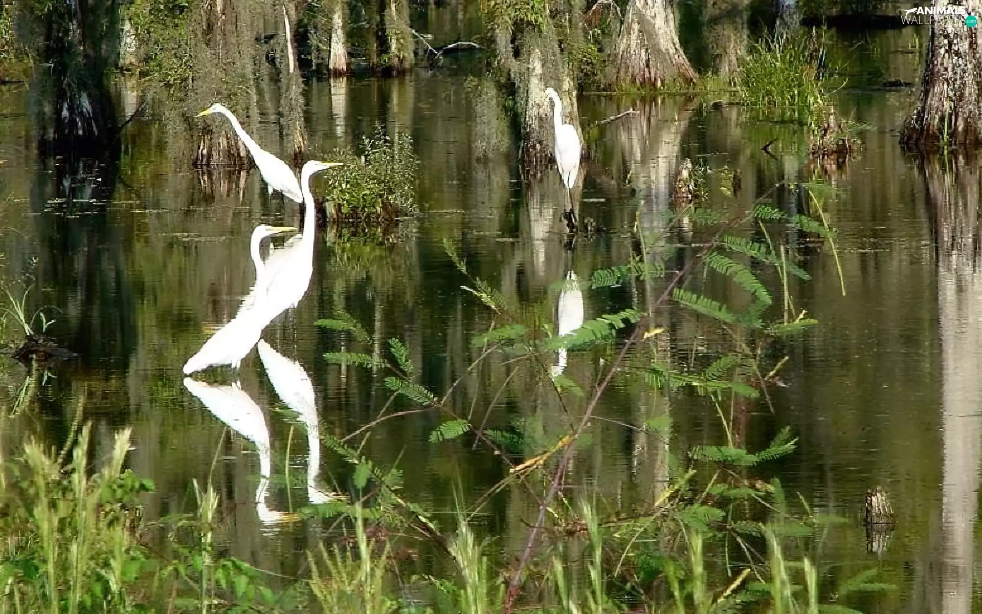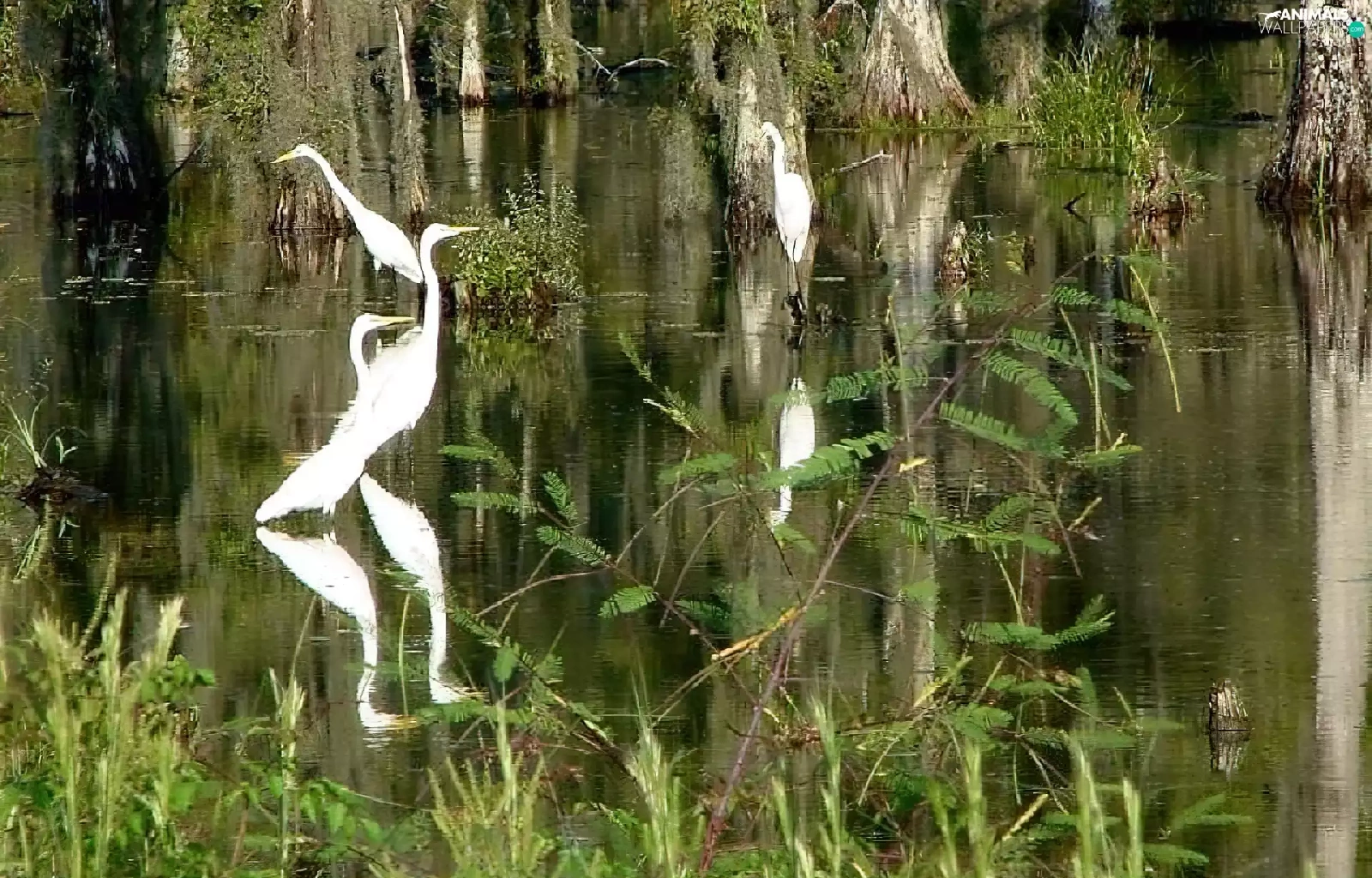 White, herons