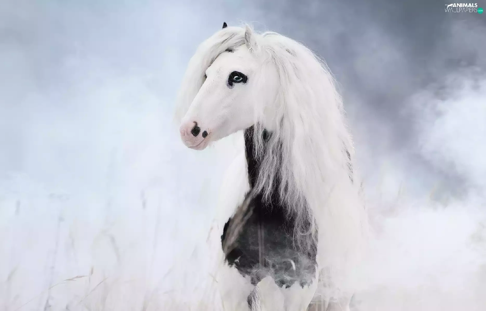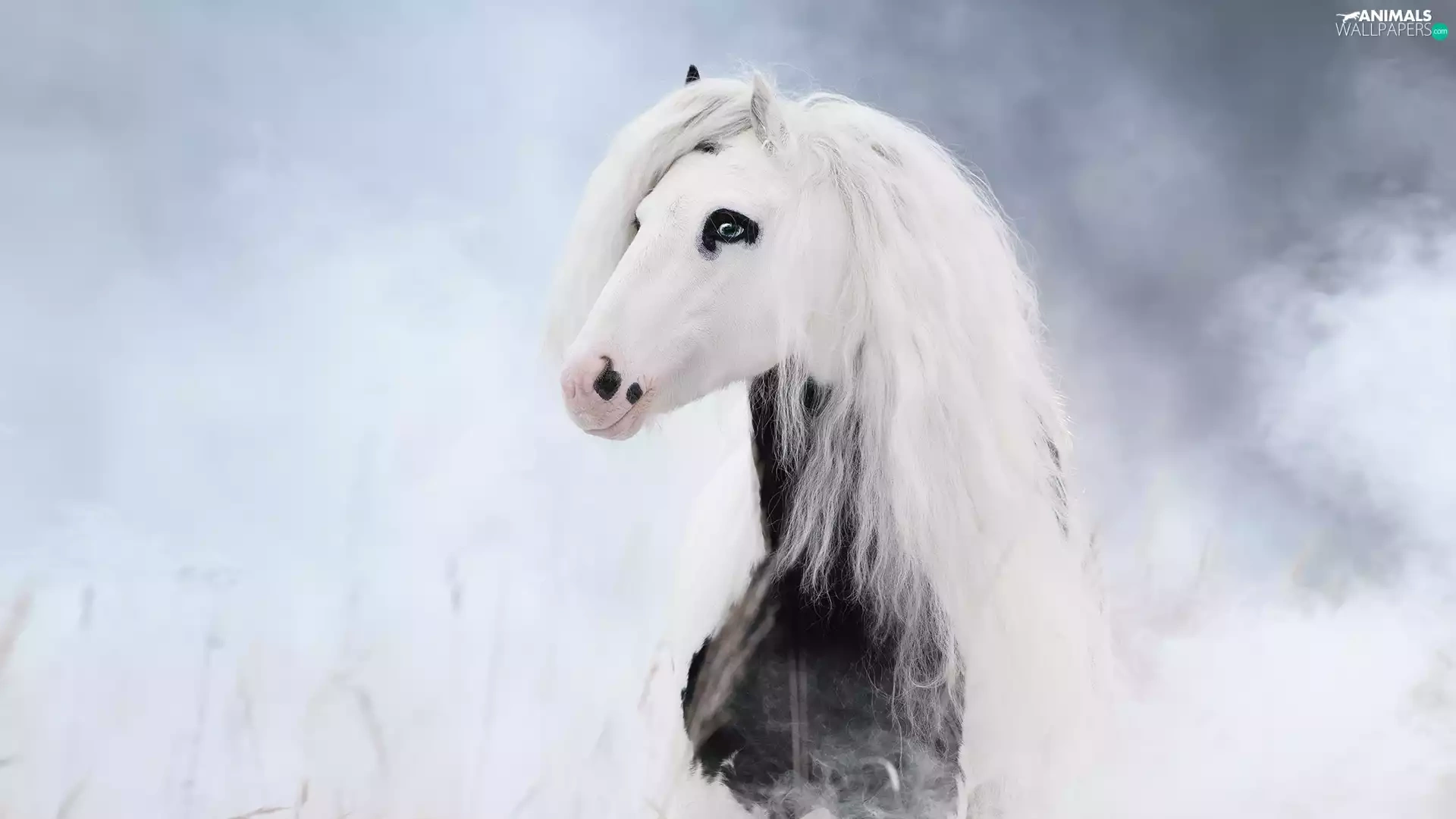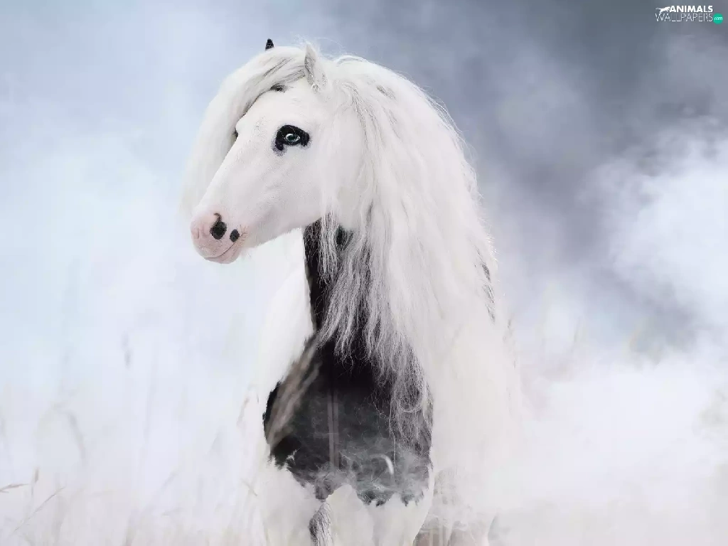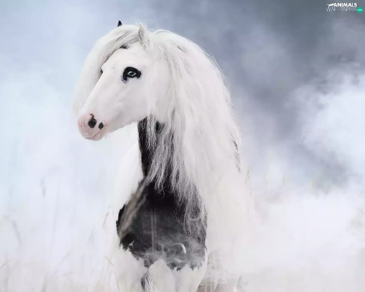 mane, smoke, Horse, White, White and Black
