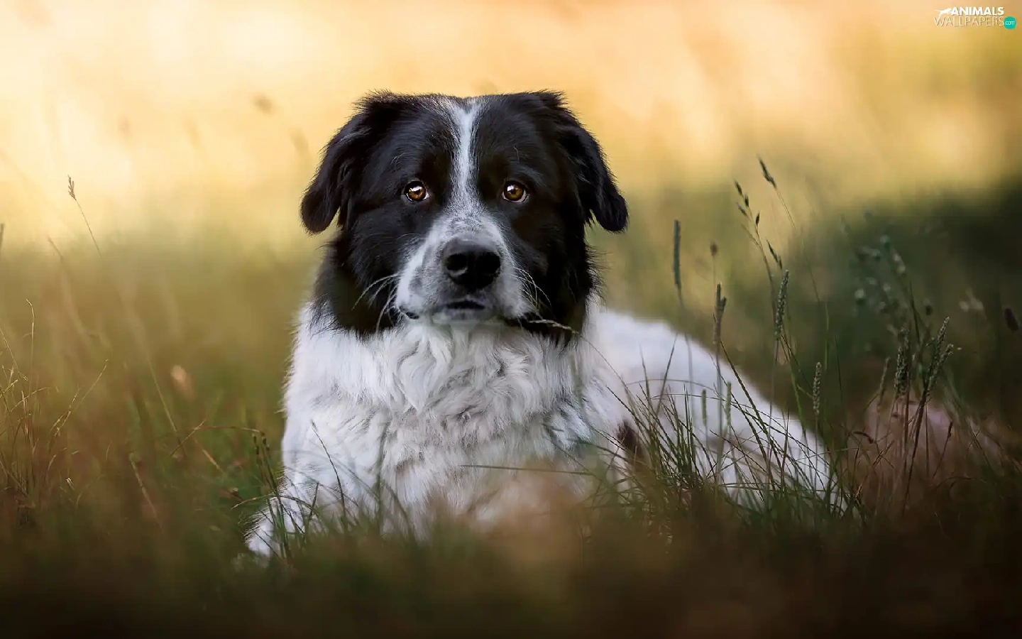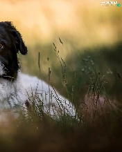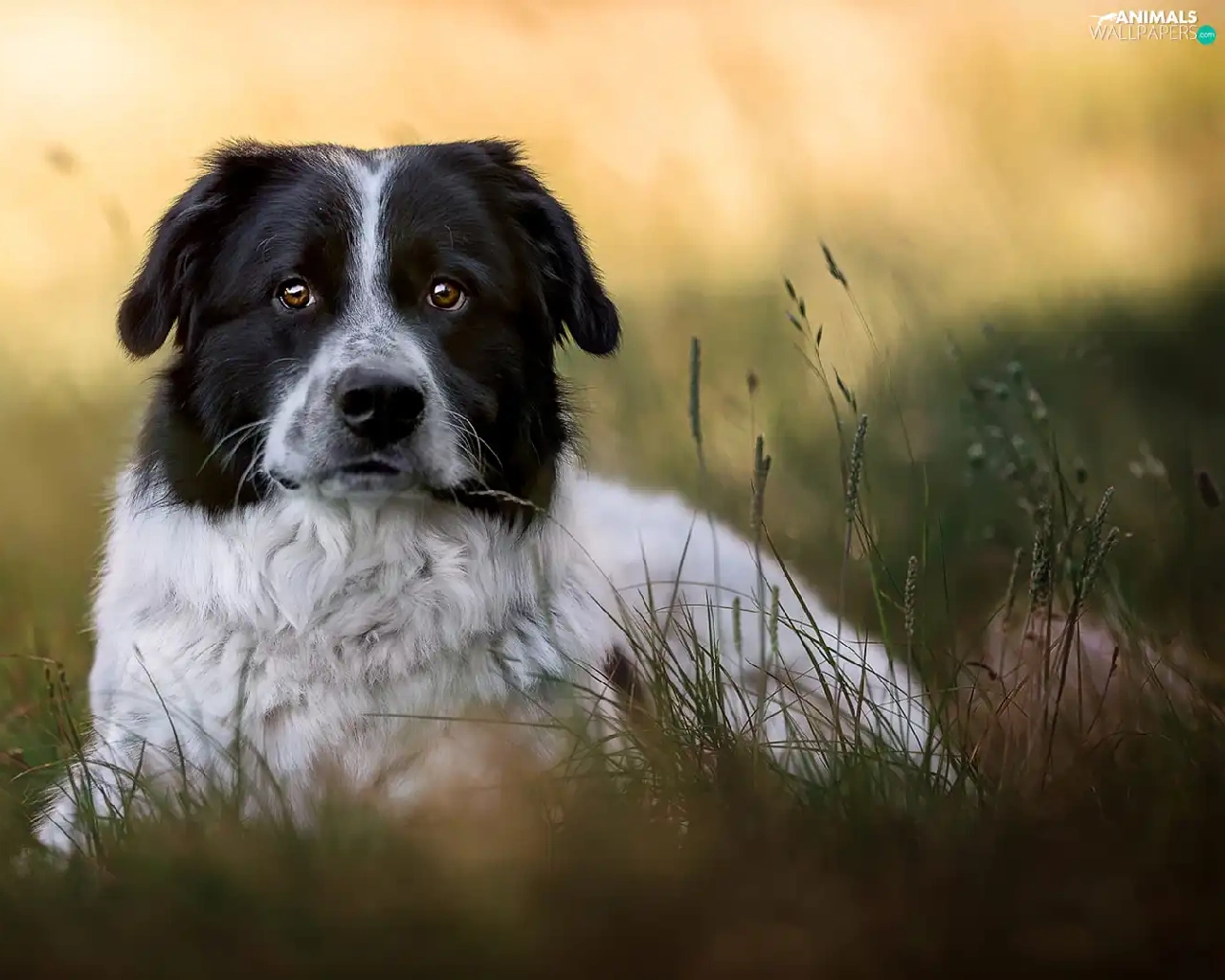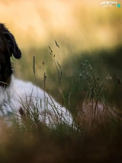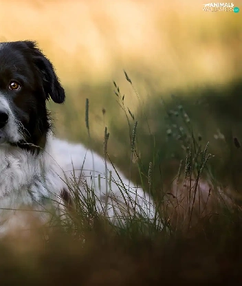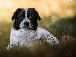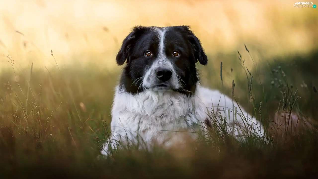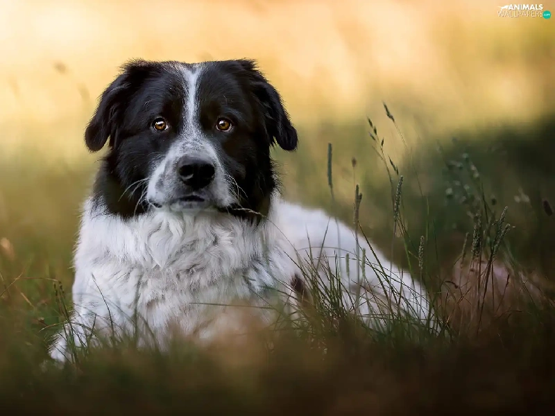 dog, black and white, grass, mongrel