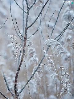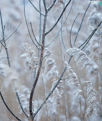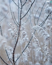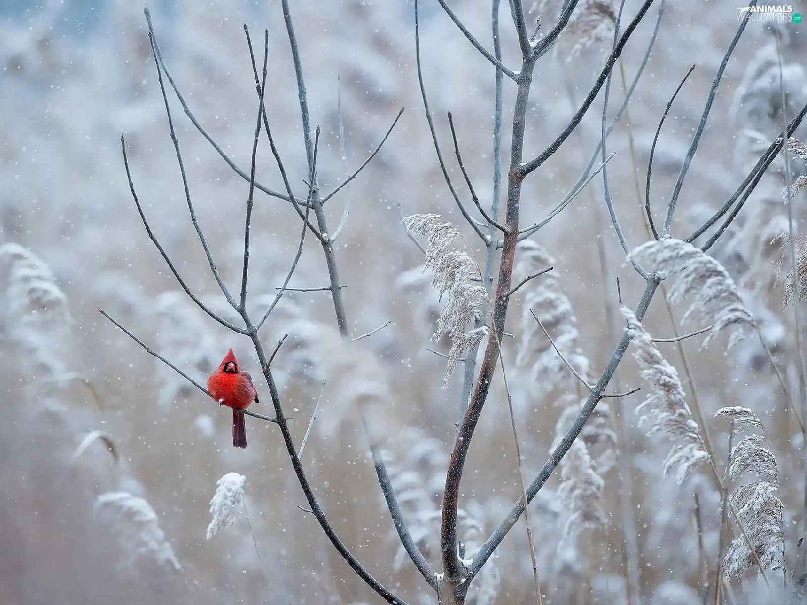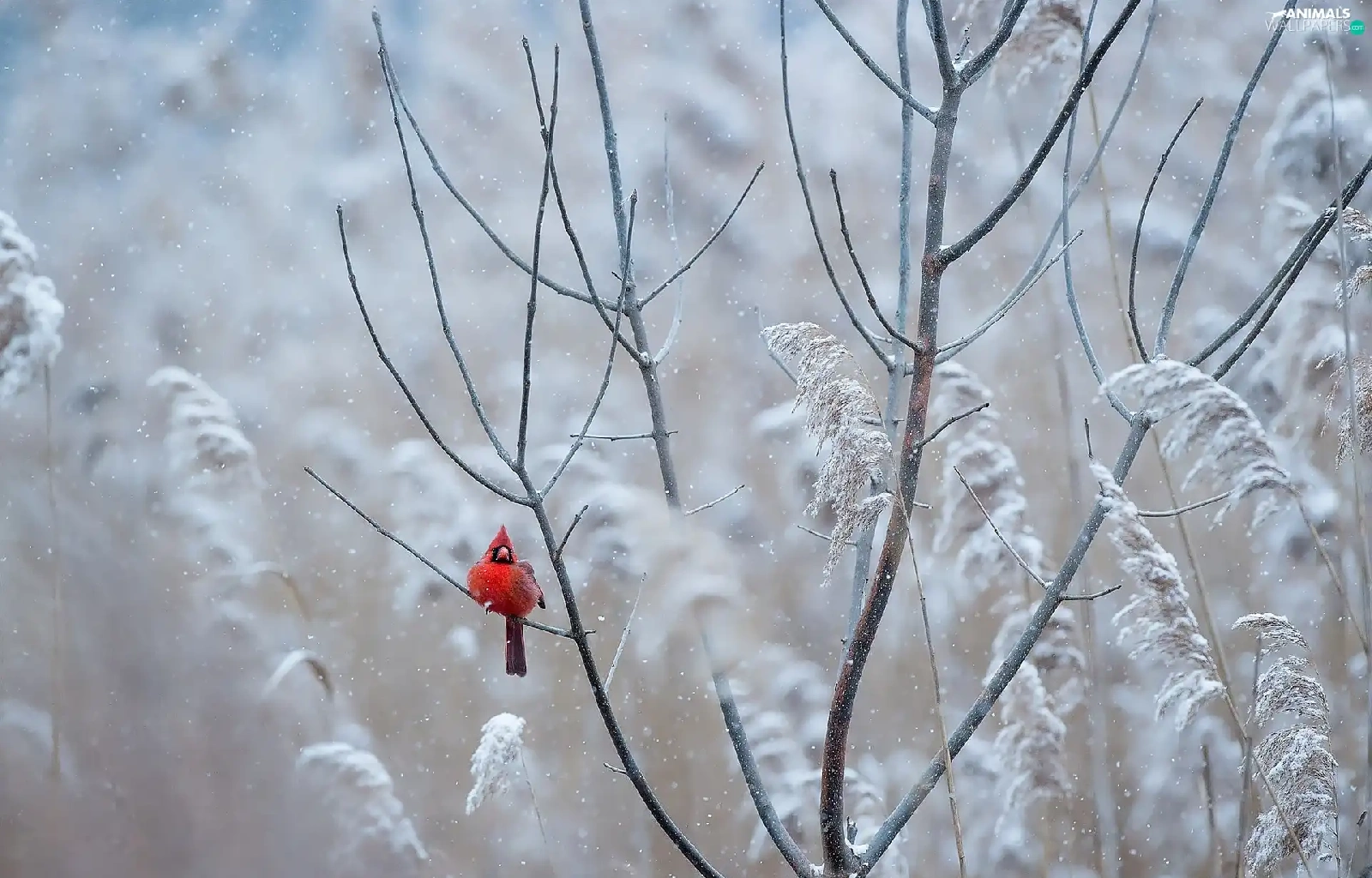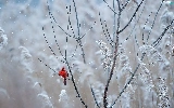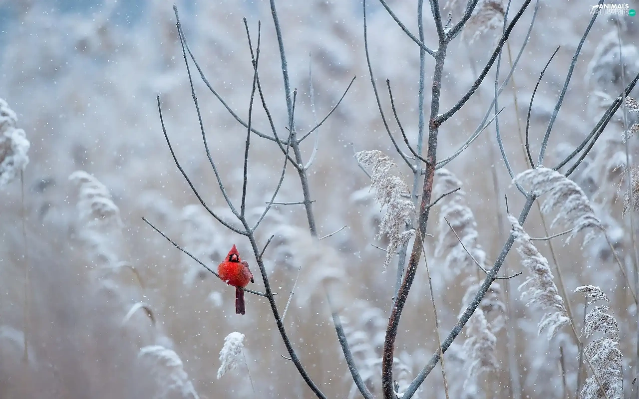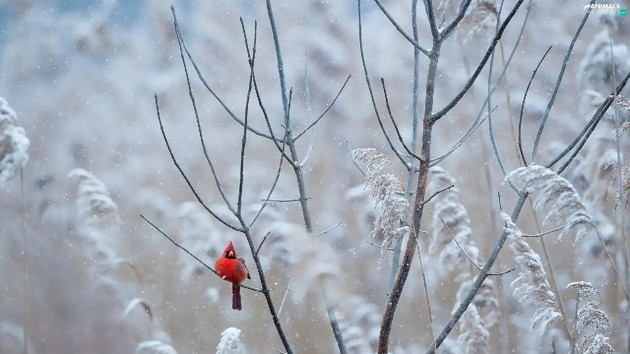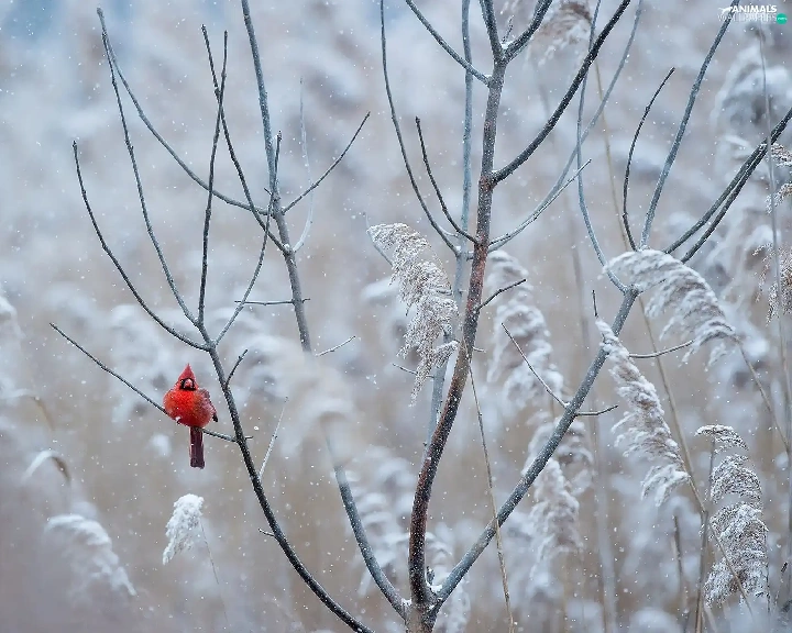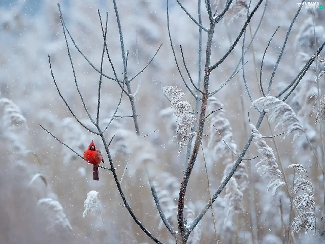 Bird, Twigs, White frost, Northern Cardinal