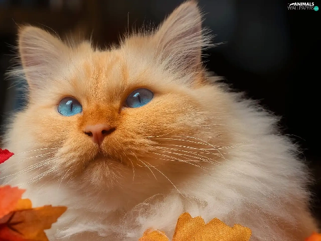 gazing, cat, Leaf, white and red
