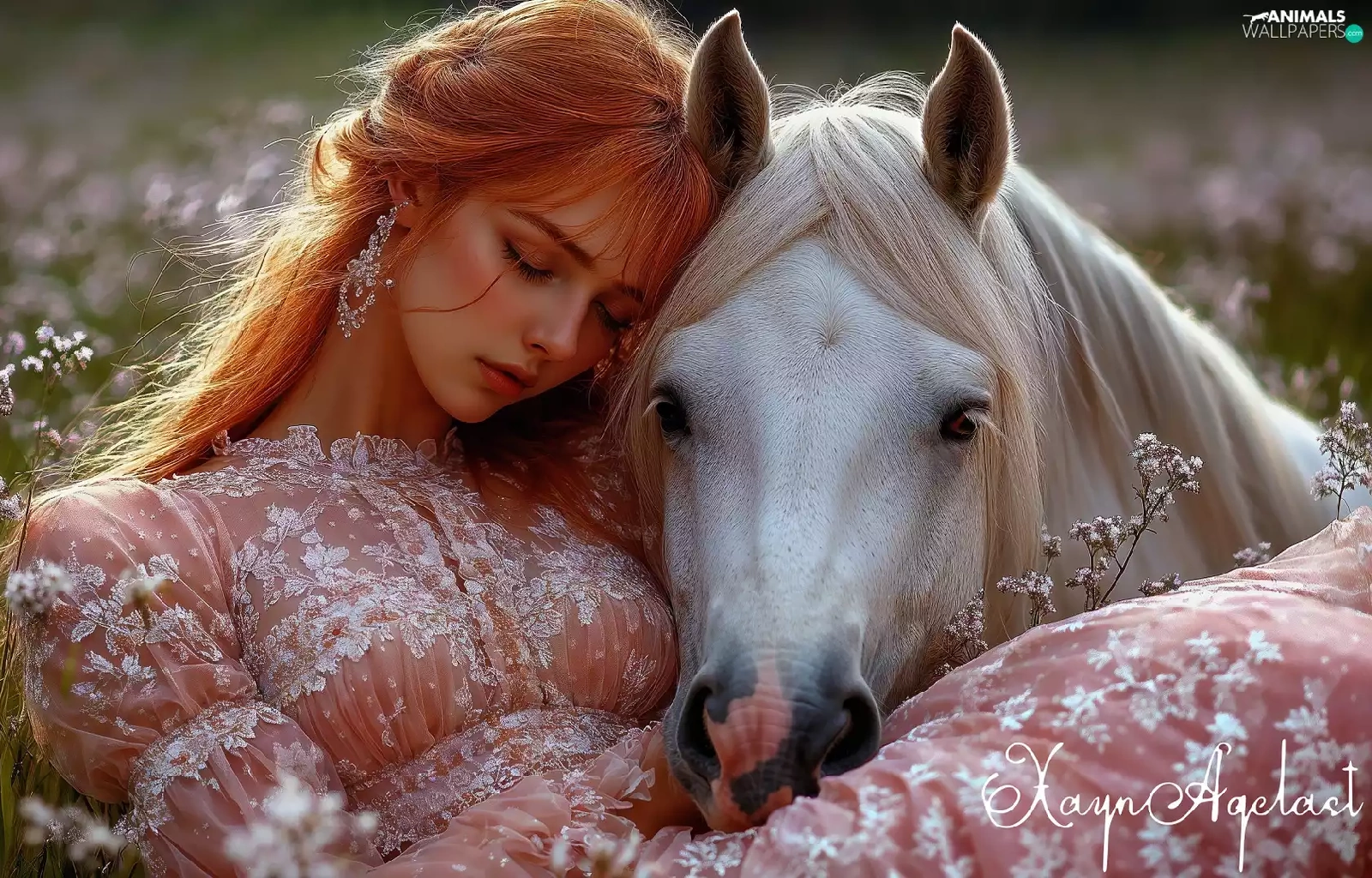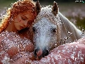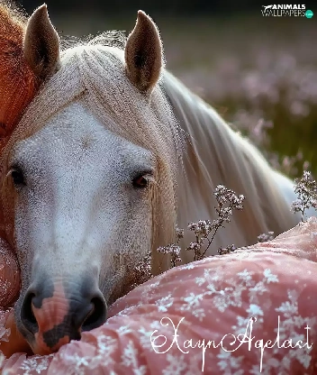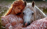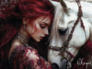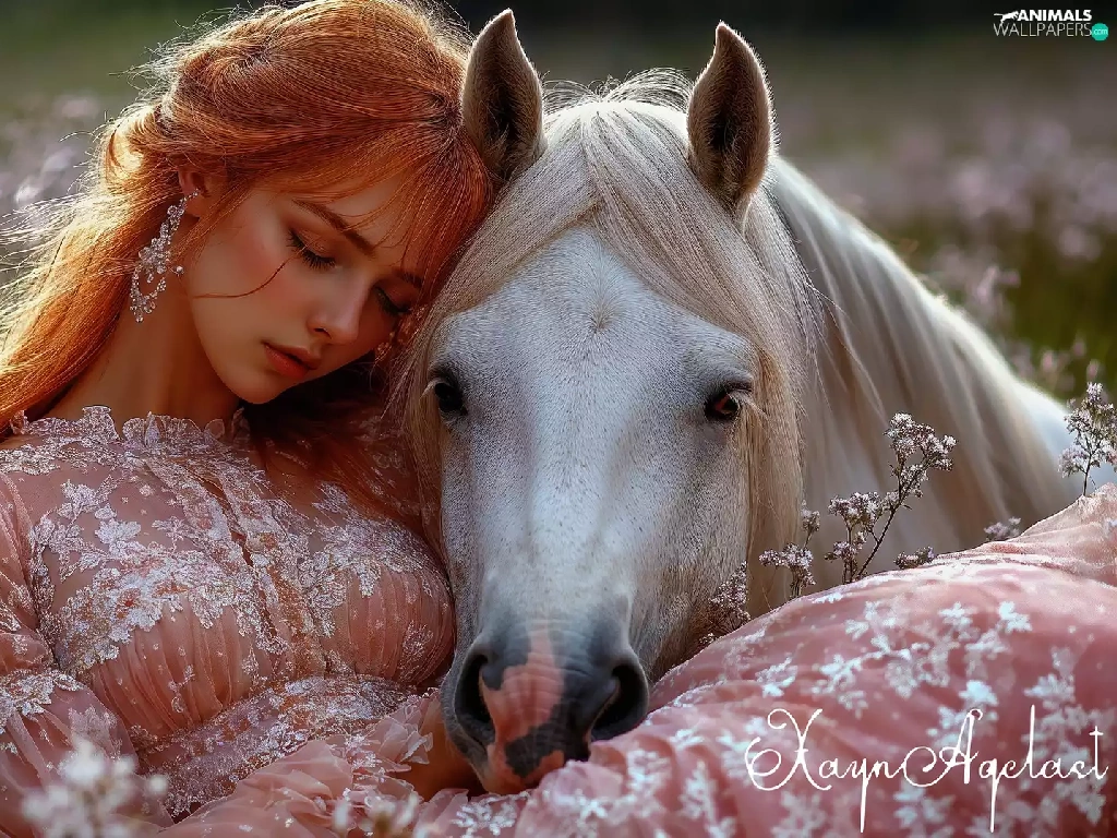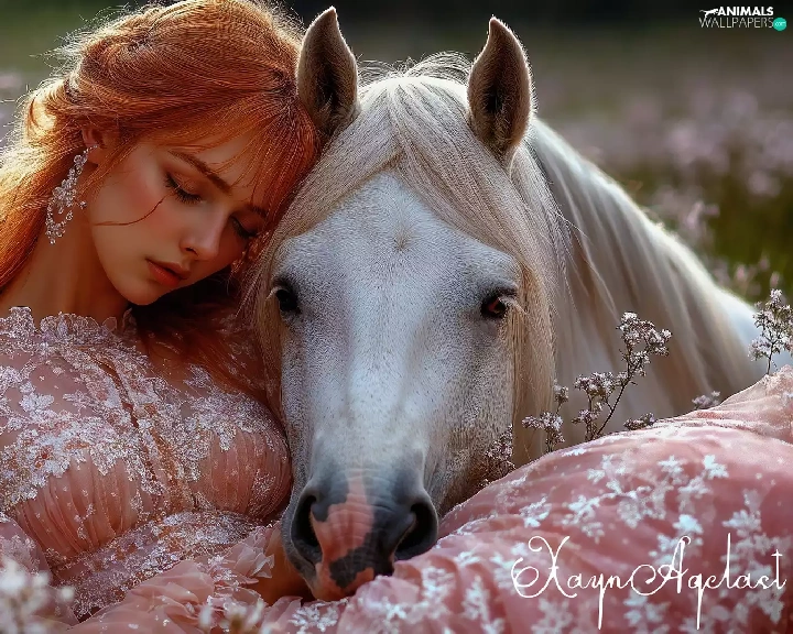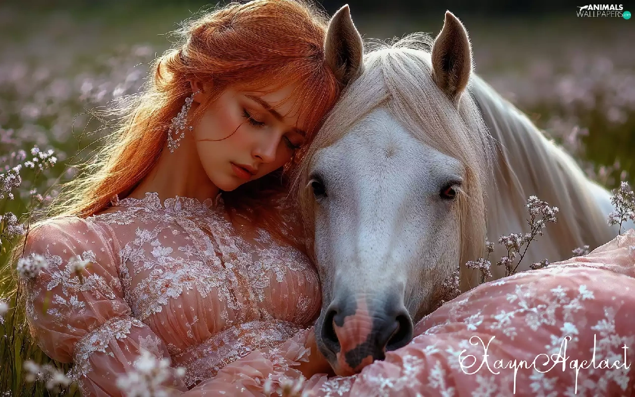 Women, the sleeping, White, Horse, Meadow, redhead