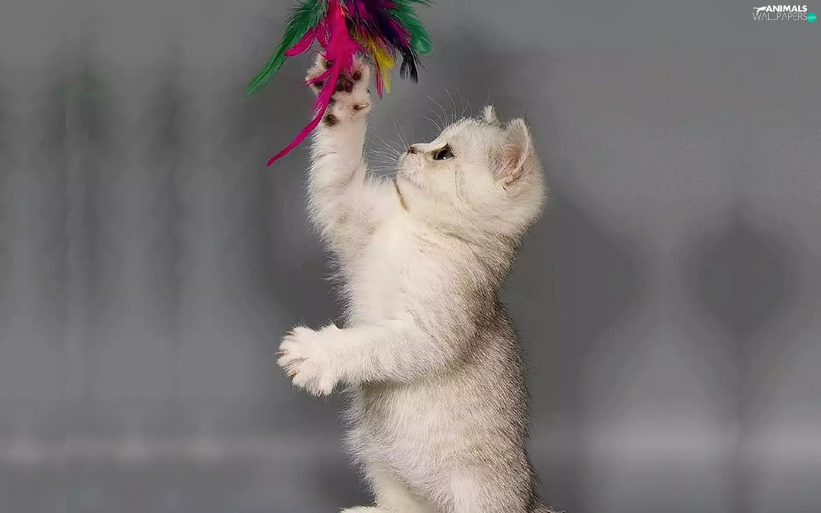 small, kitten, feather, White