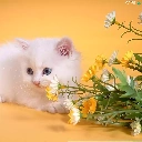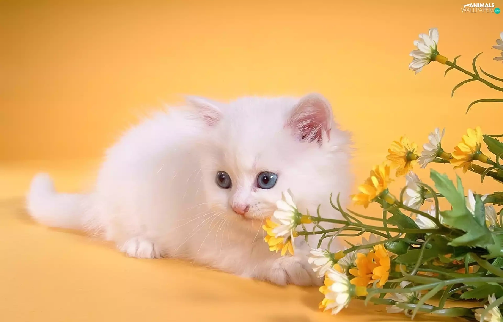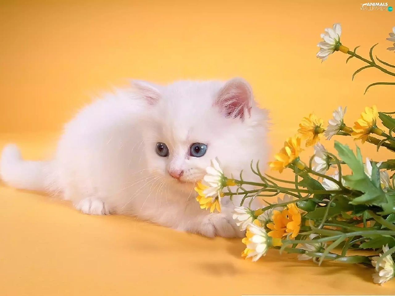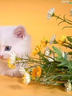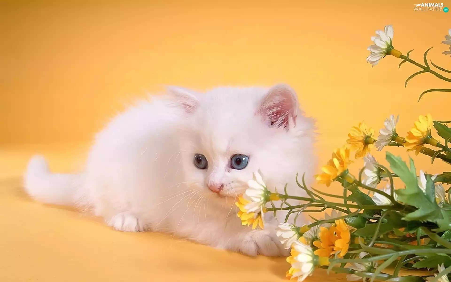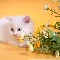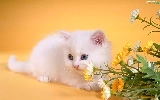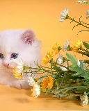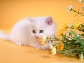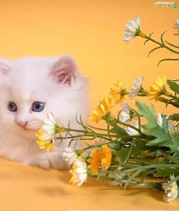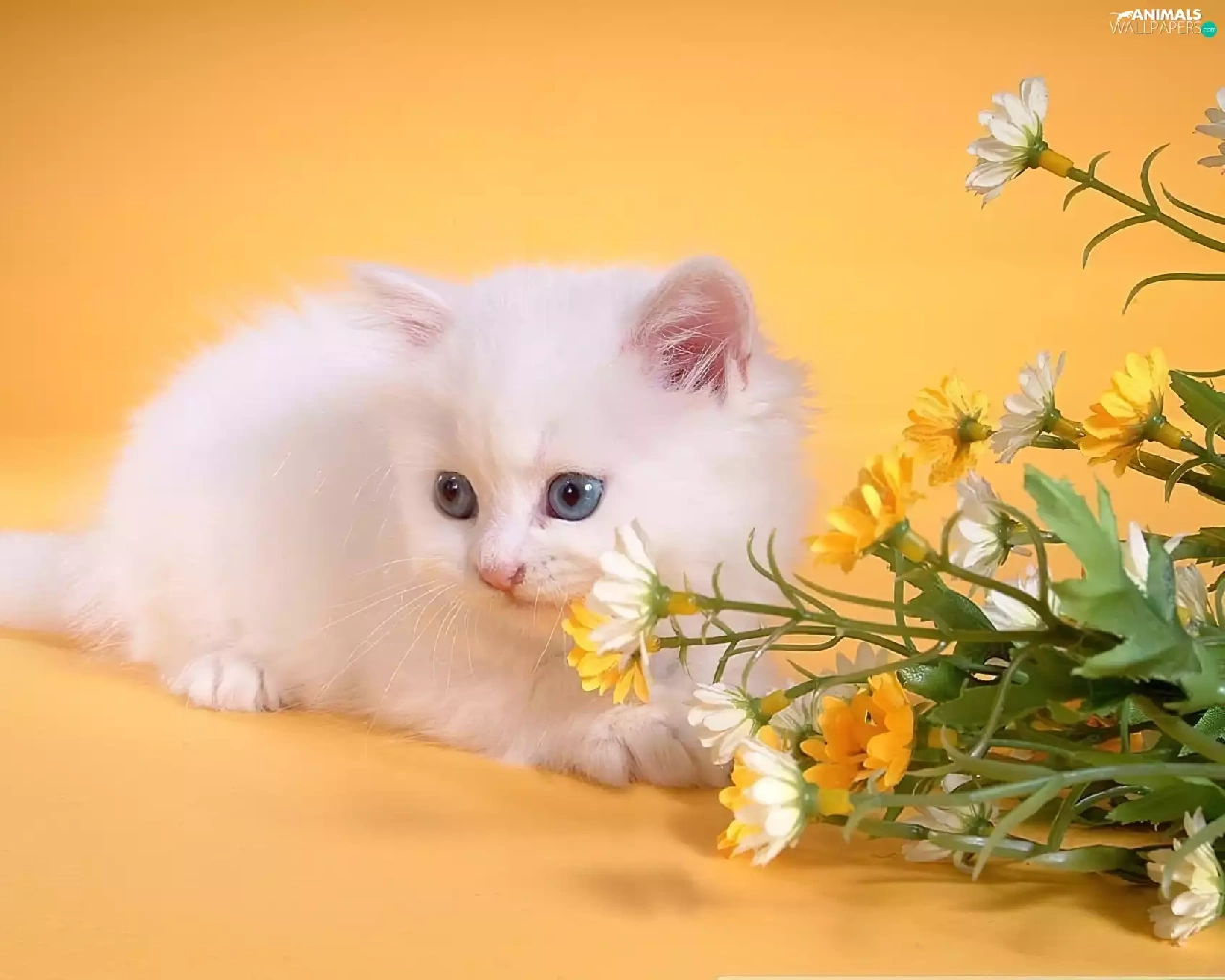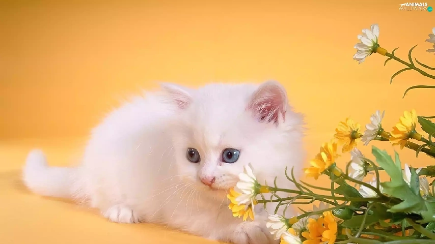 small, kitten, Flowers, White