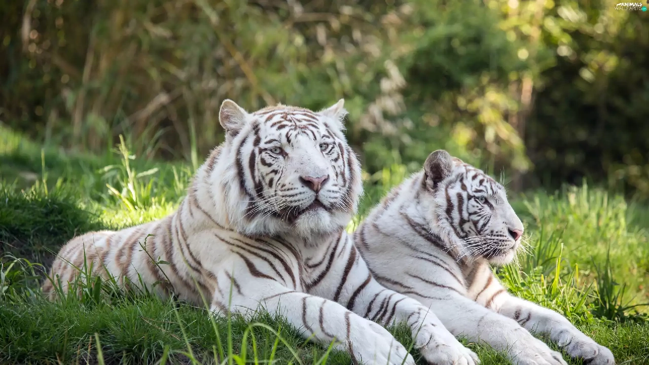 Steam, tigers, grass, white