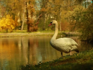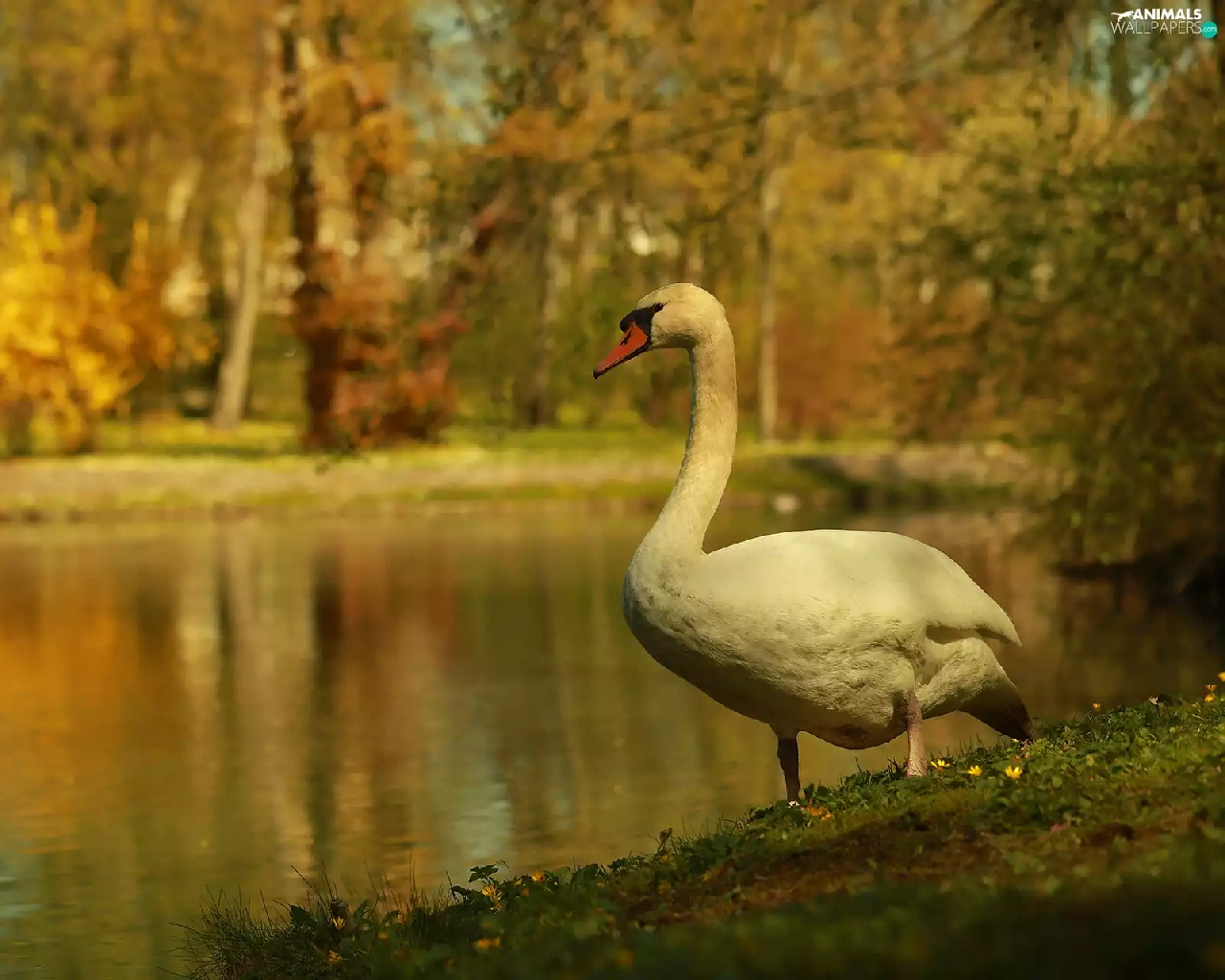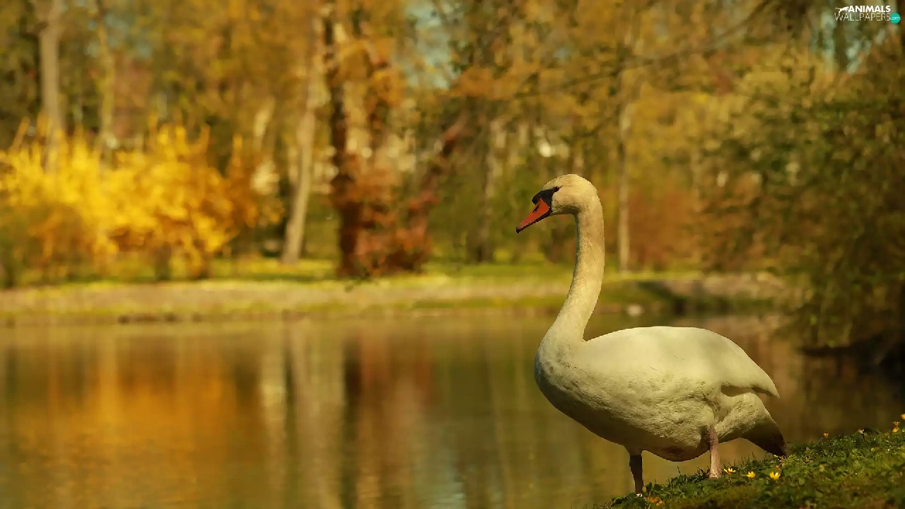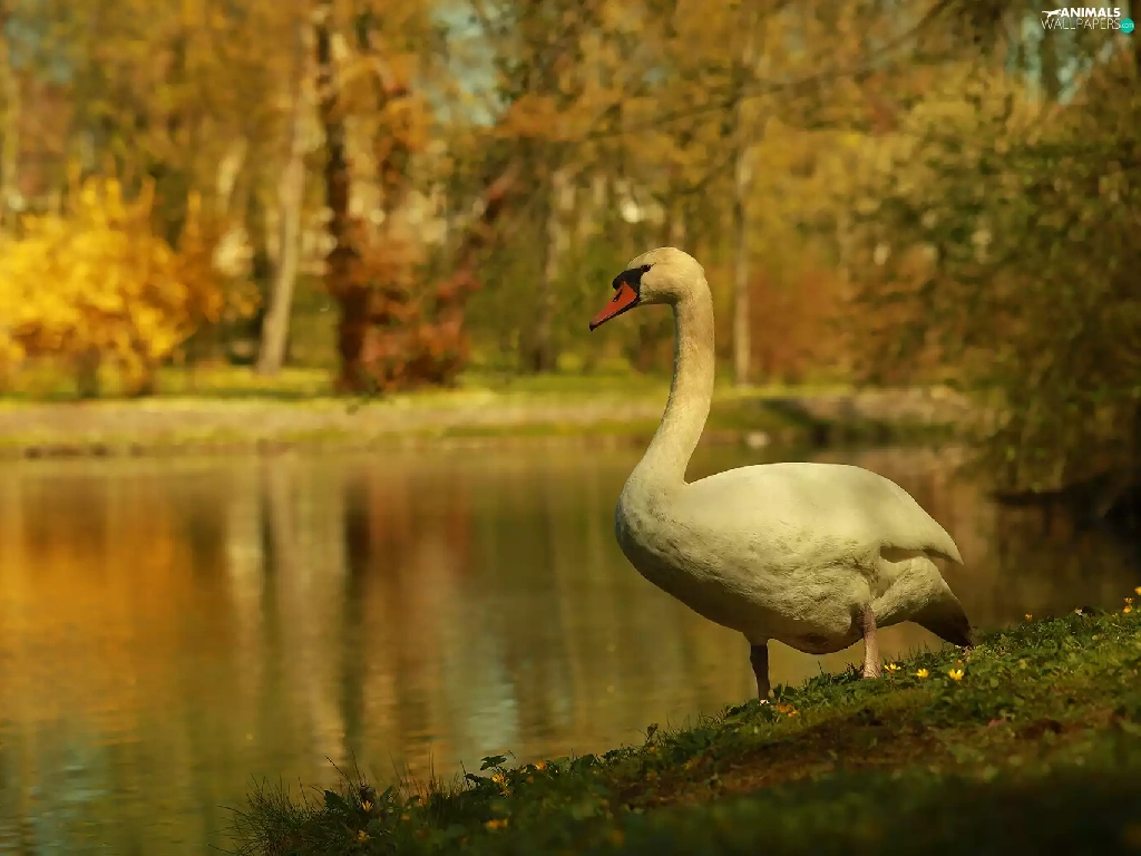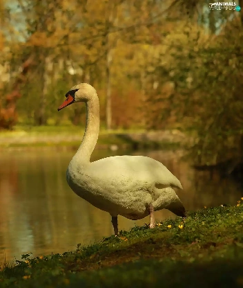 Swans, Bird, lake, White