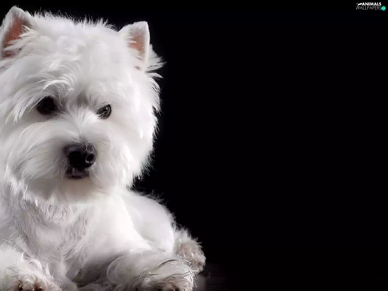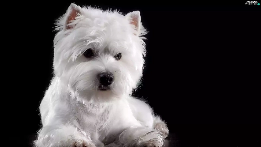 White, Dark Background, West Highland White Terrier, muzzle, dog