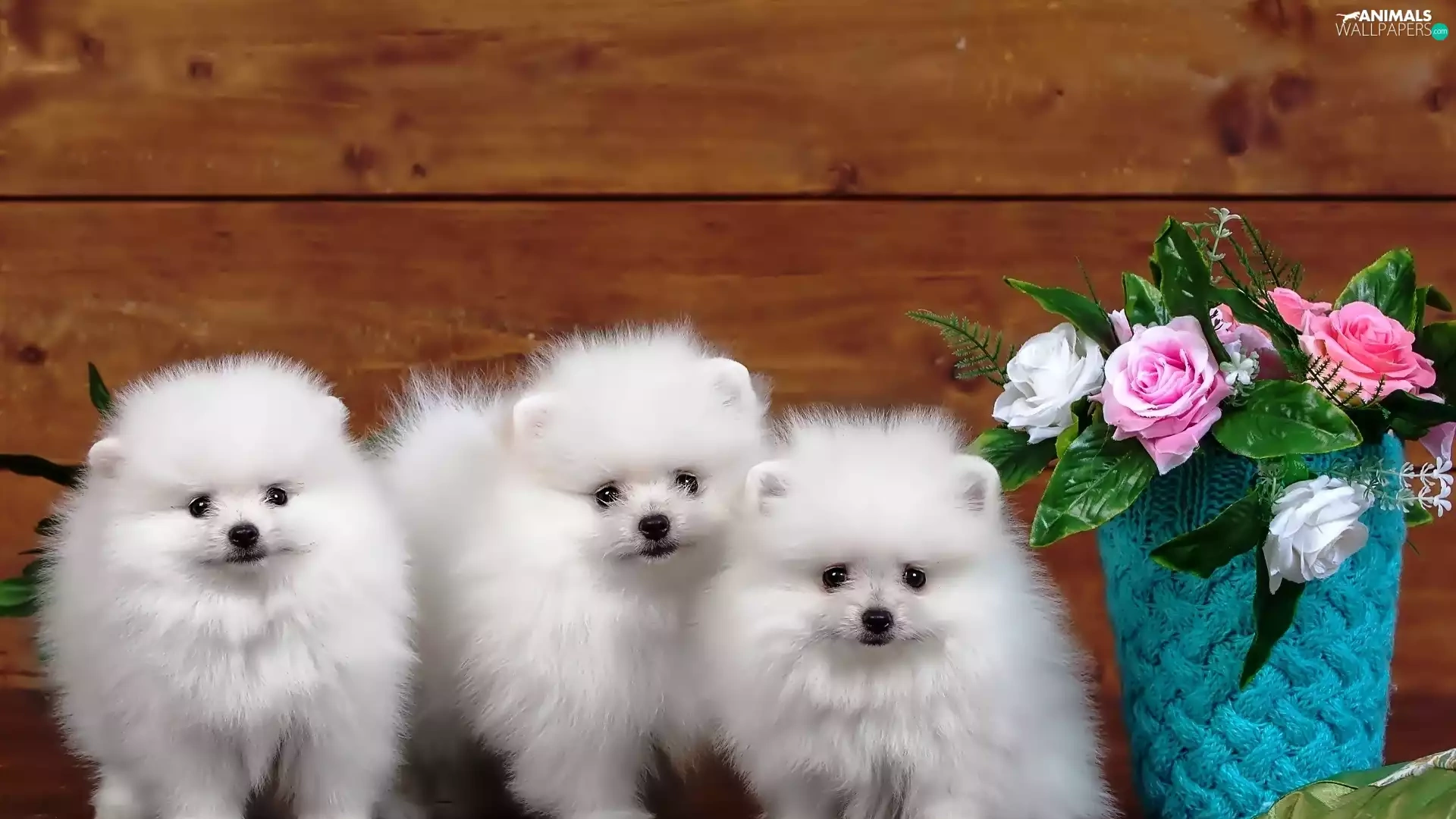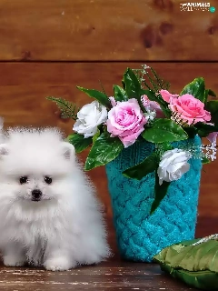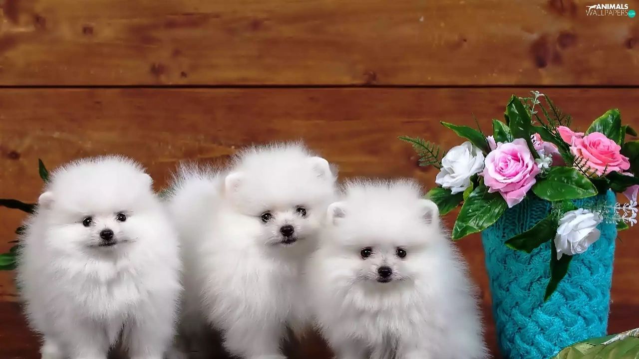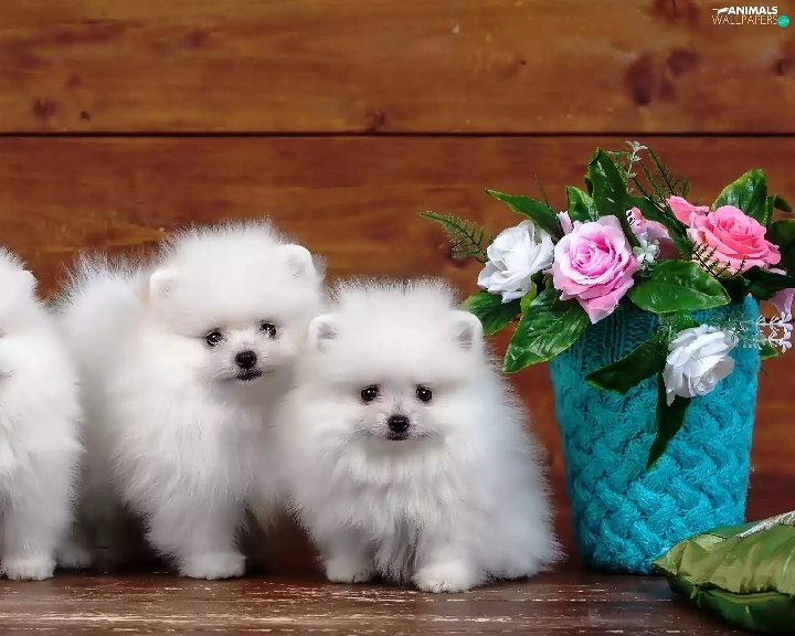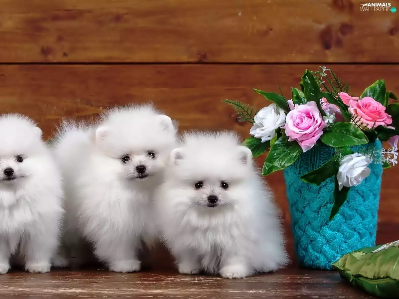 Three, Spitz, roses, White