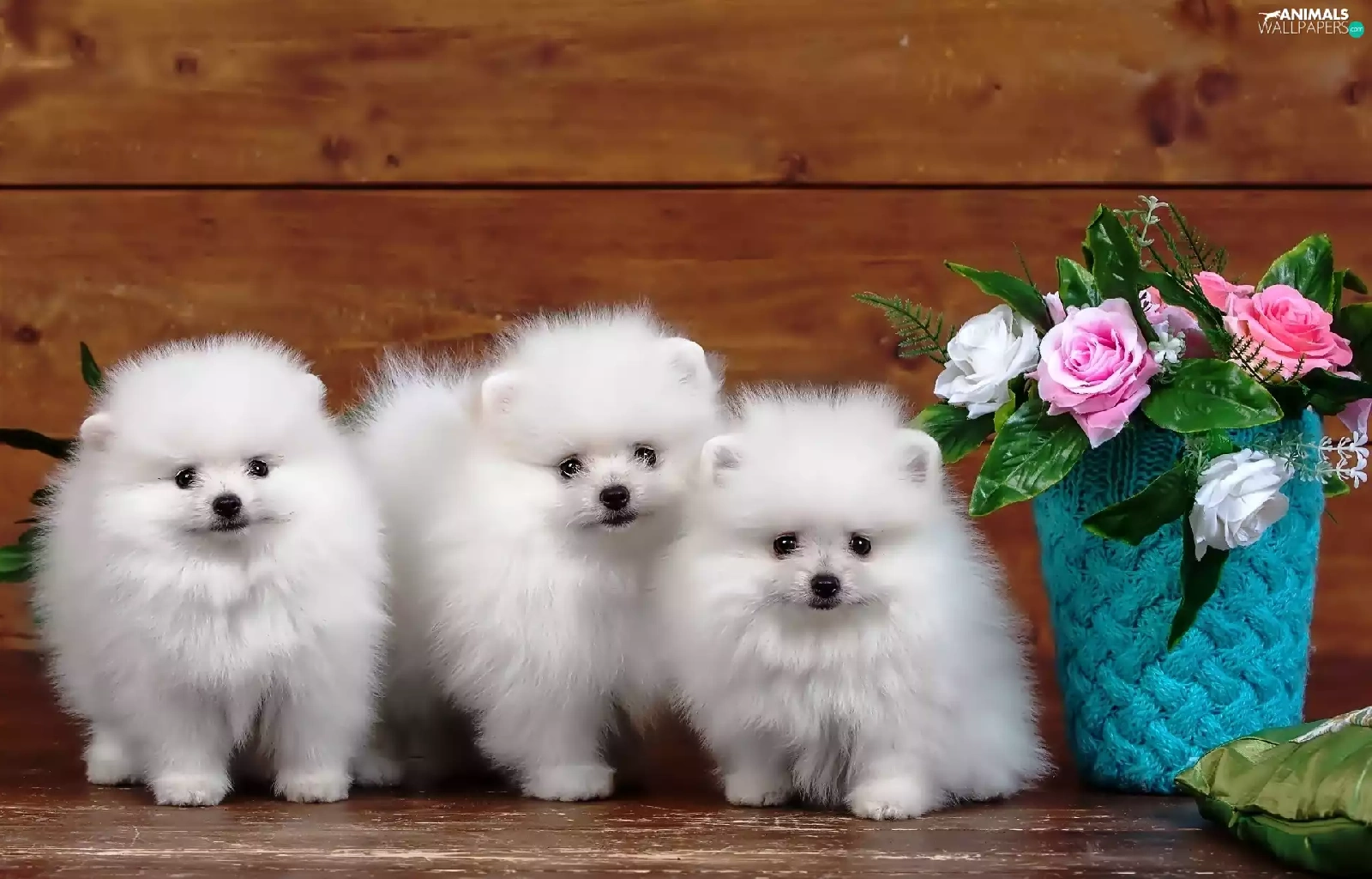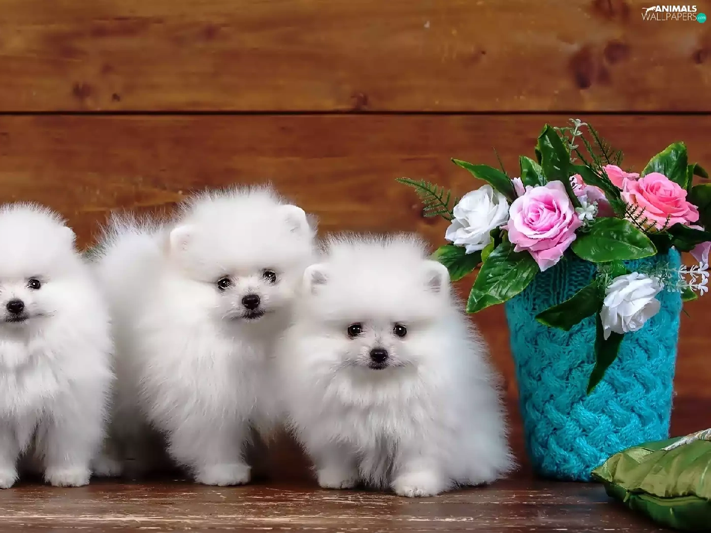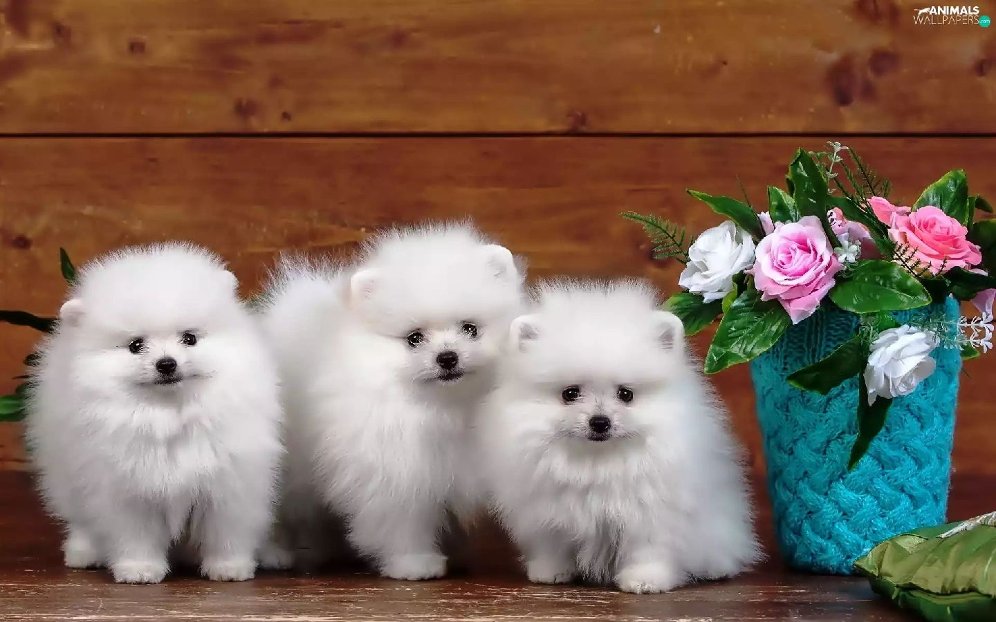 Three, Spitz, roses, White