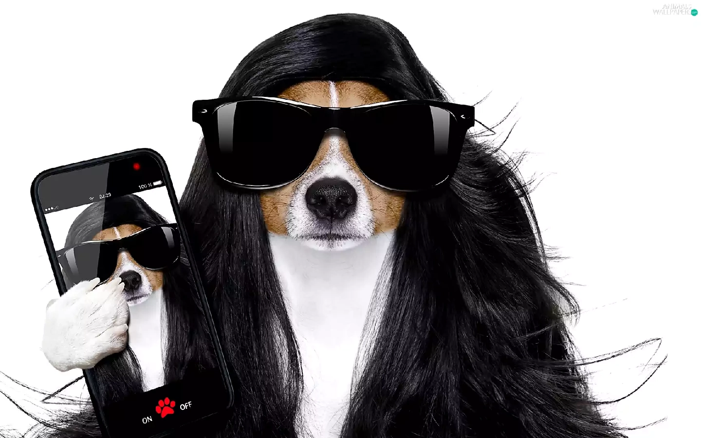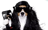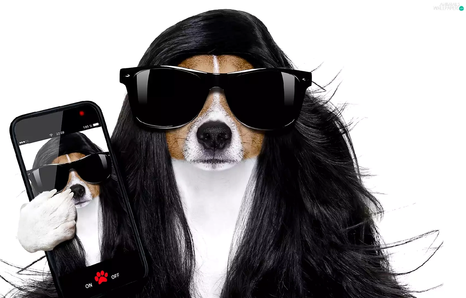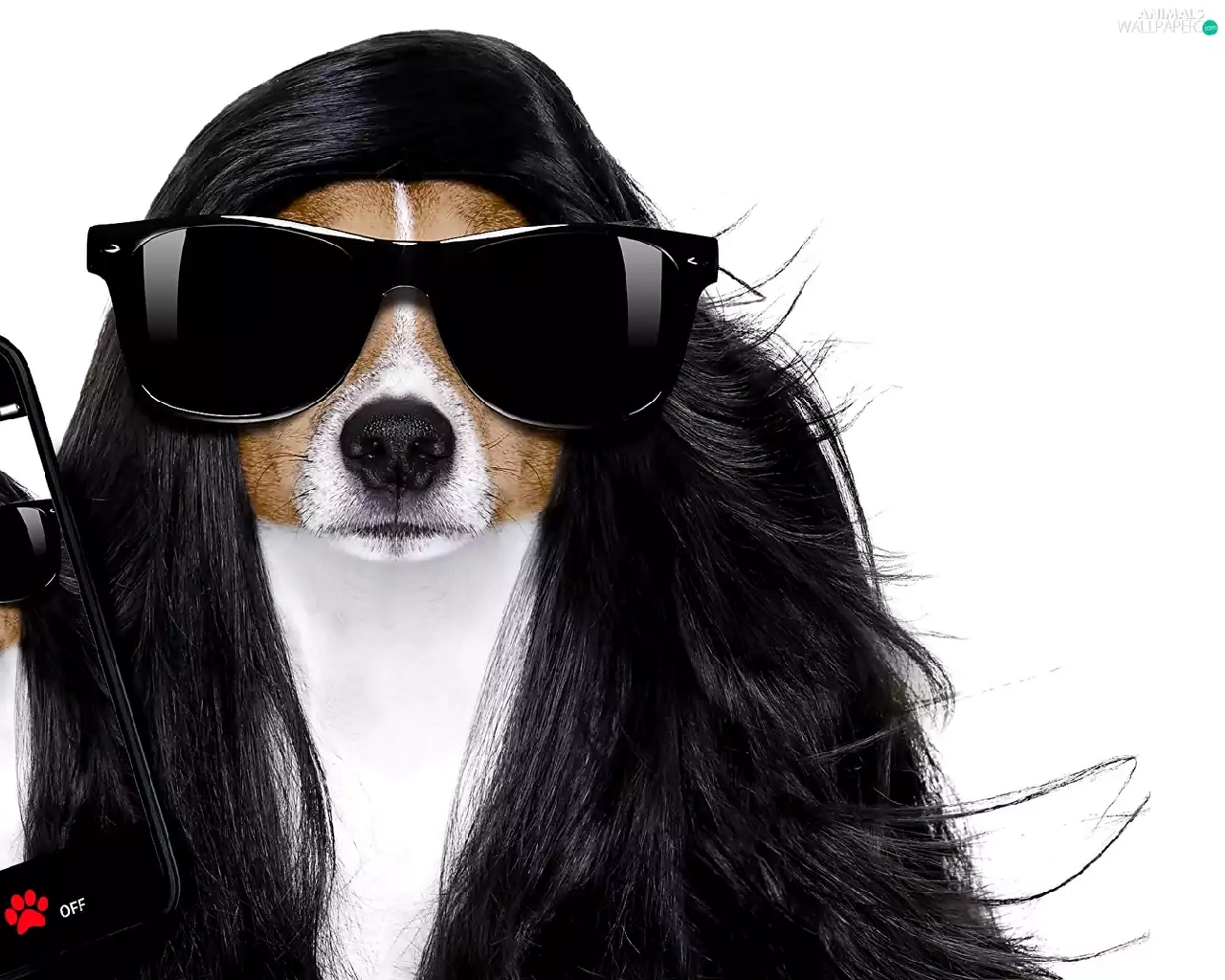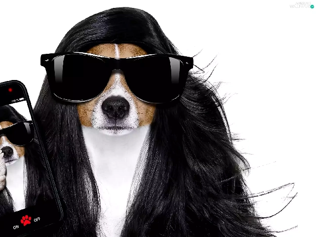 wig, dog, Telephone, white background, Glasses, Jack Russel Terrier