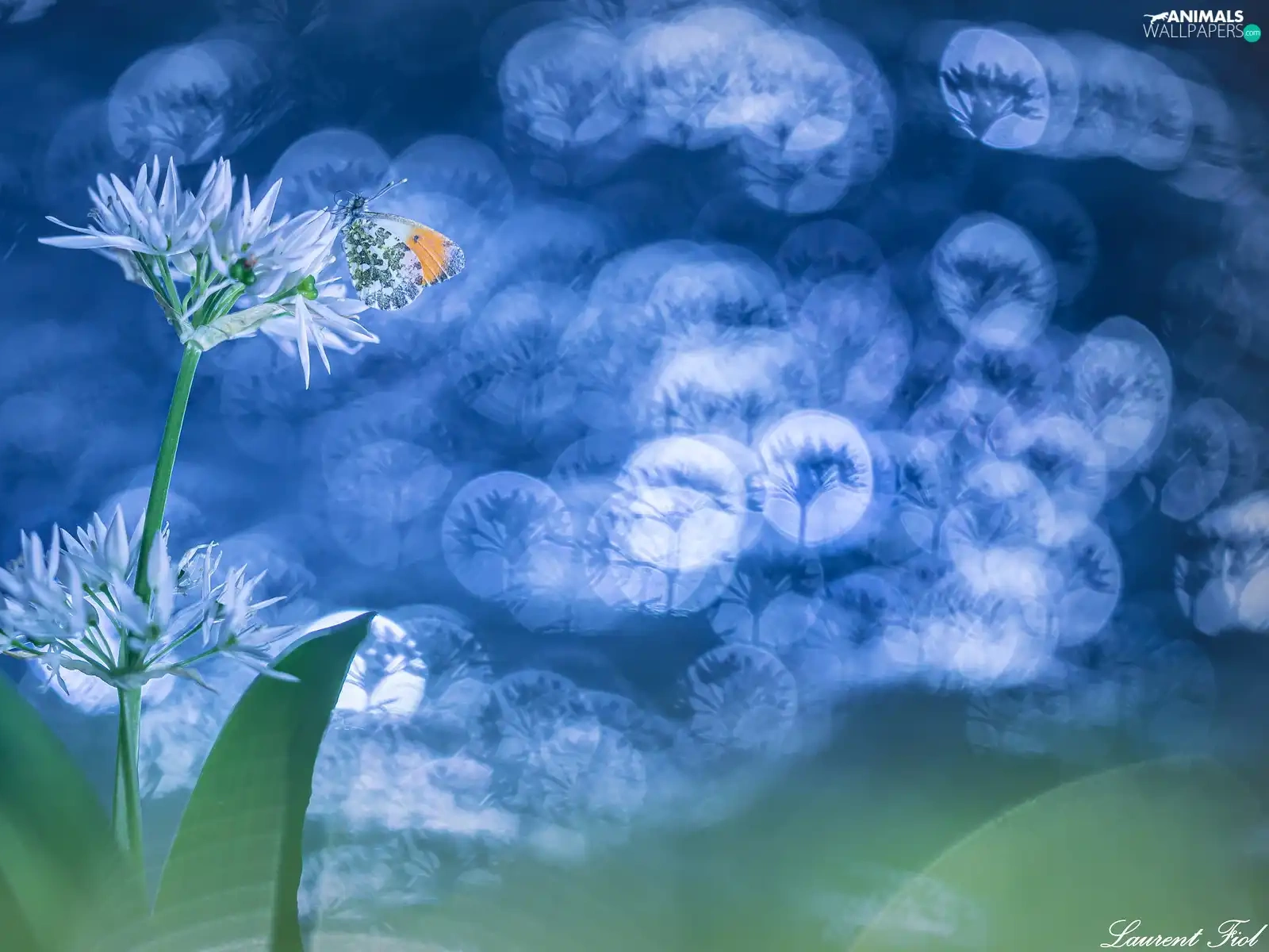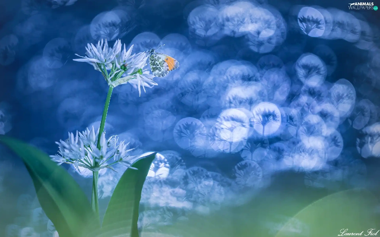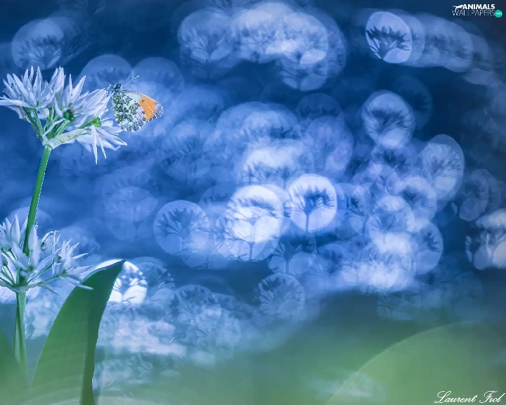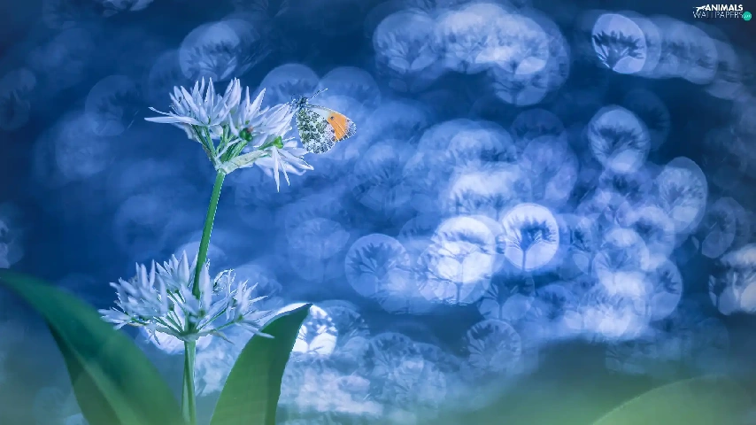 Orange Tip, Bokeh, Wild Garlic, butterfly, Flowers