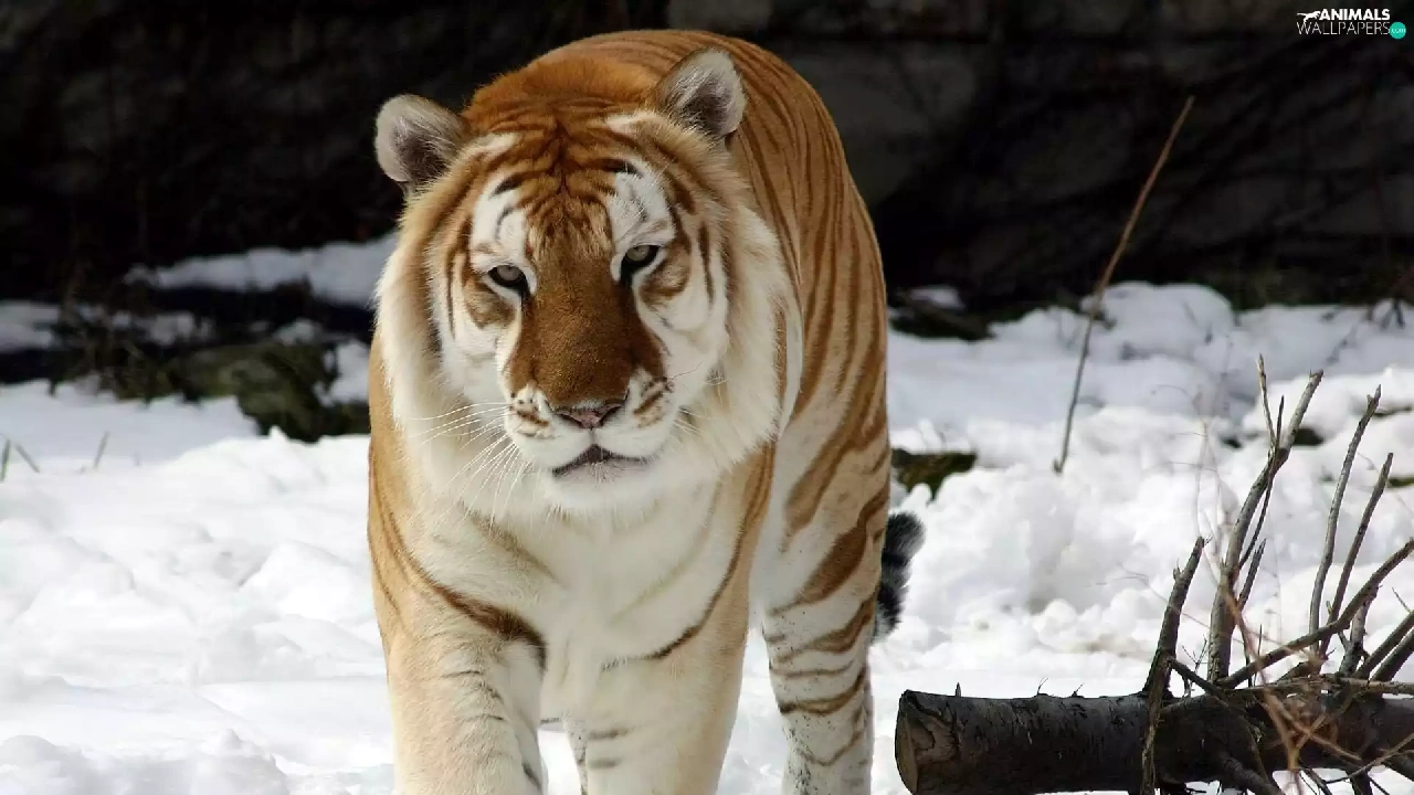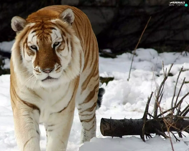tiger, cat, snow, wild