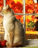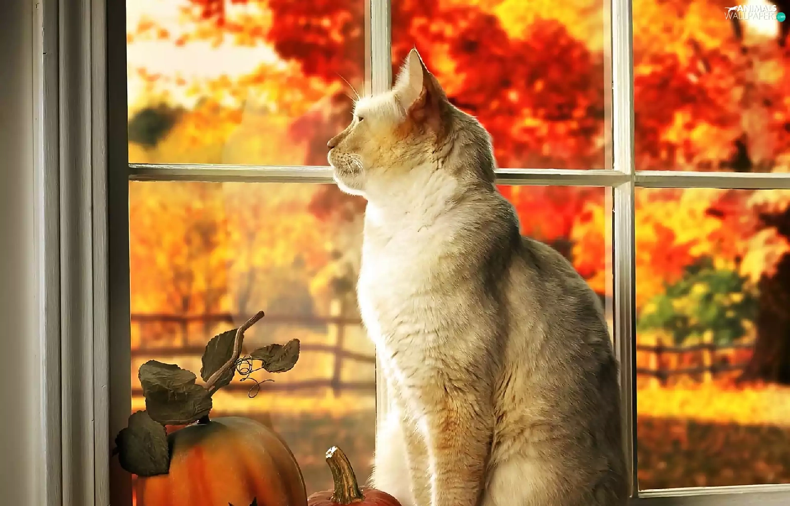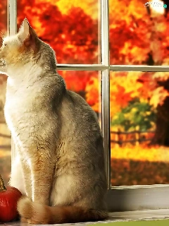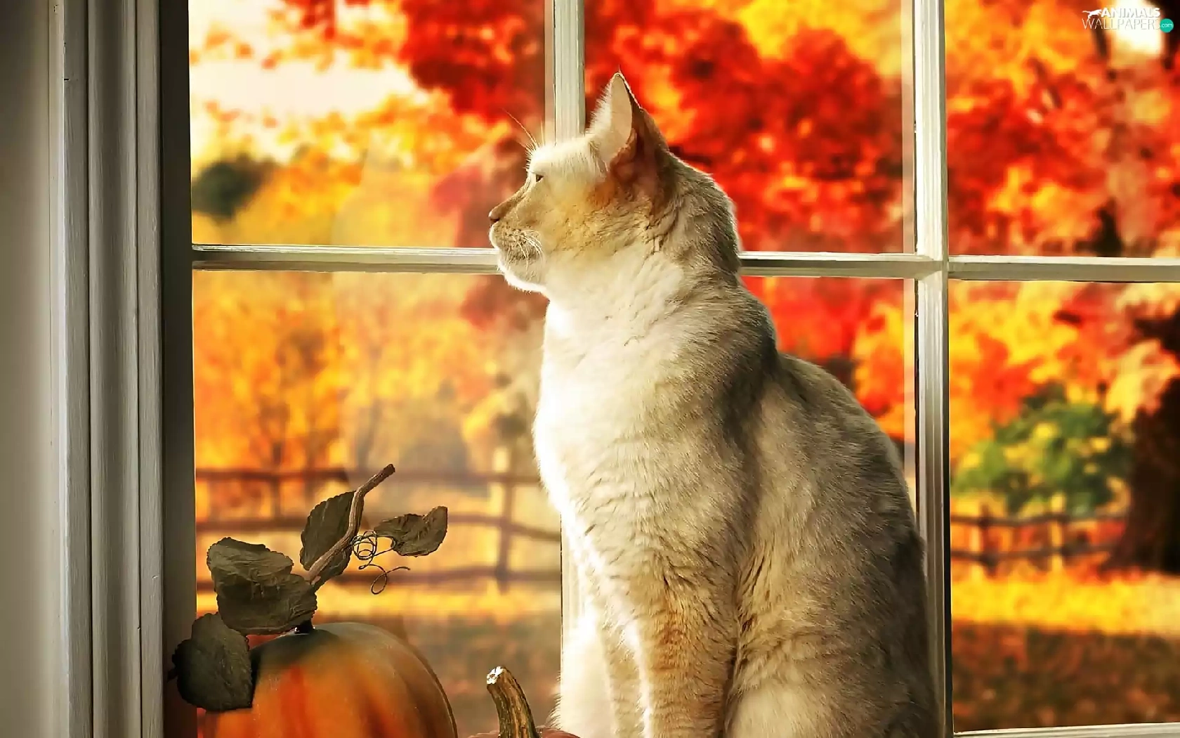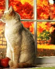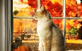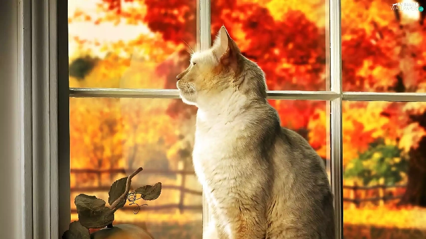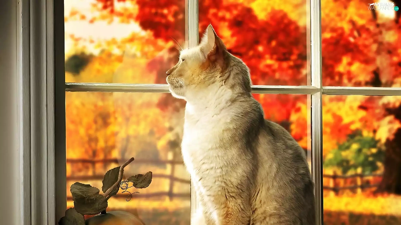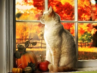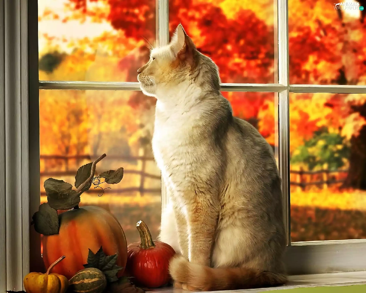 Autumn, Garden, In Window, pumpkin, cat
