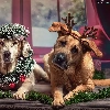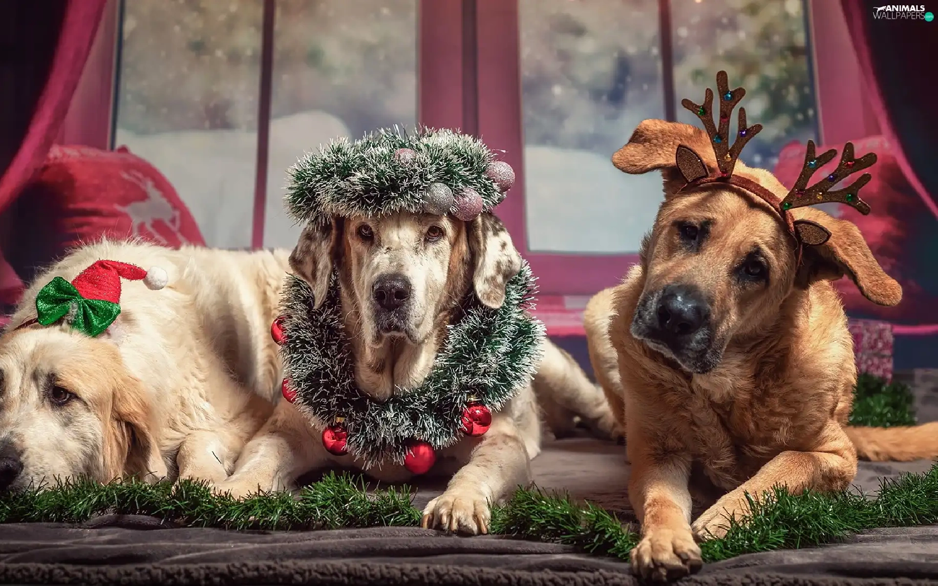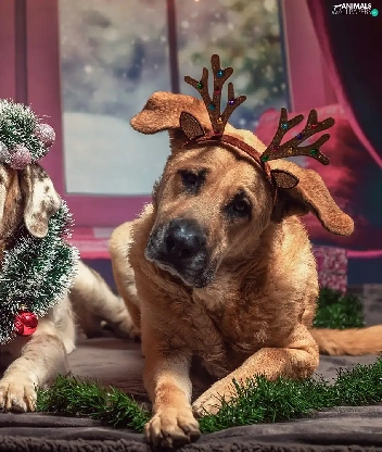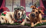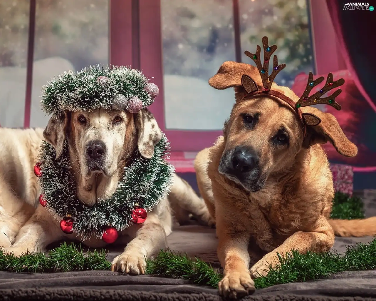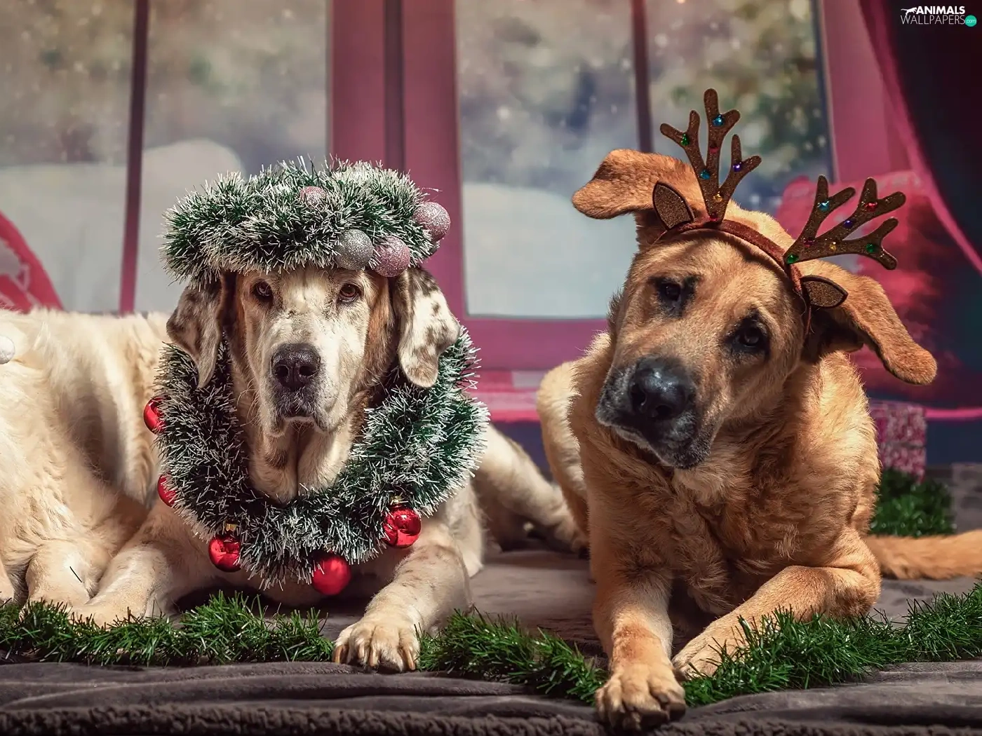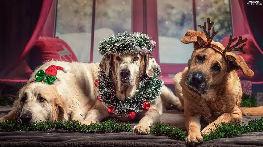 ornamentation, Window, Dogs, Christmas, Three
