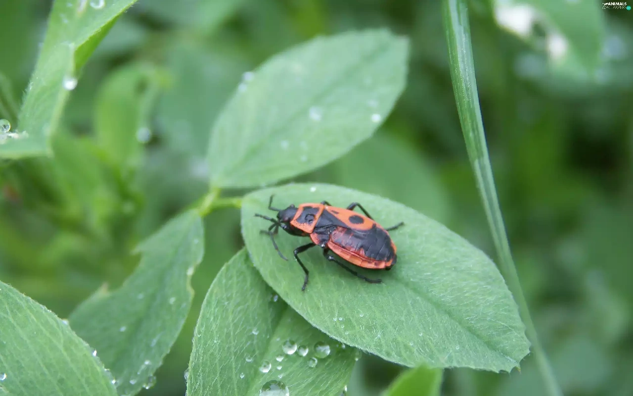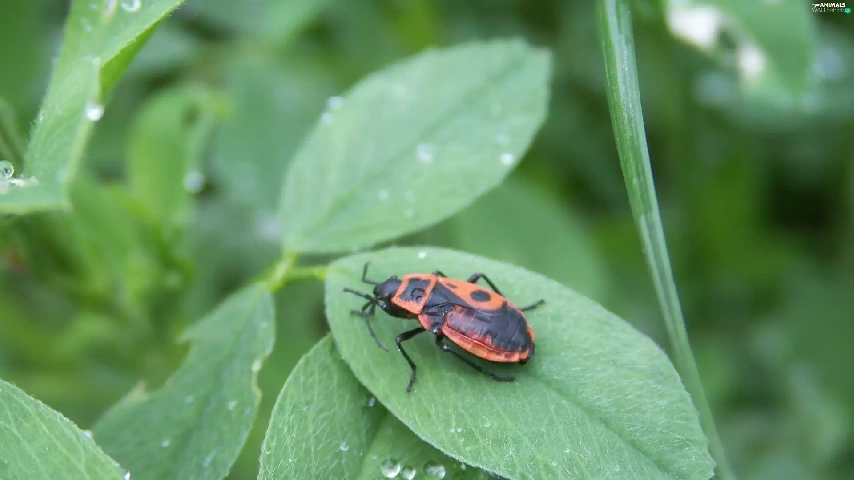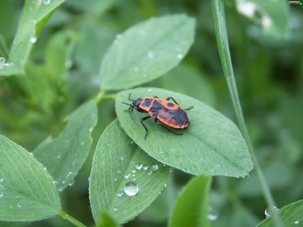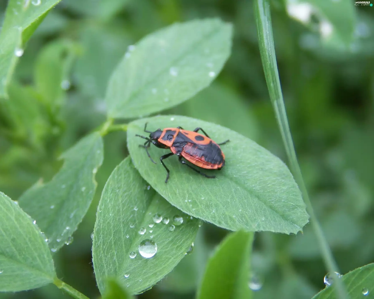 Smith wingless, drops, rain, leaf