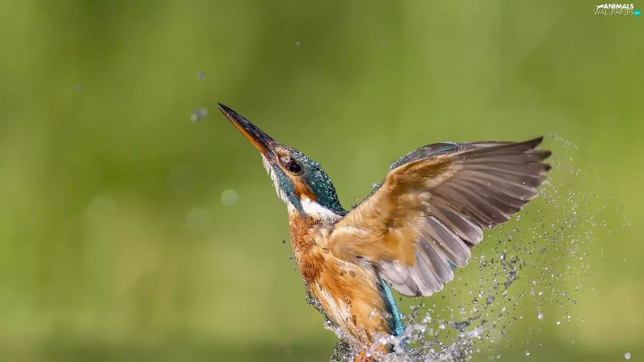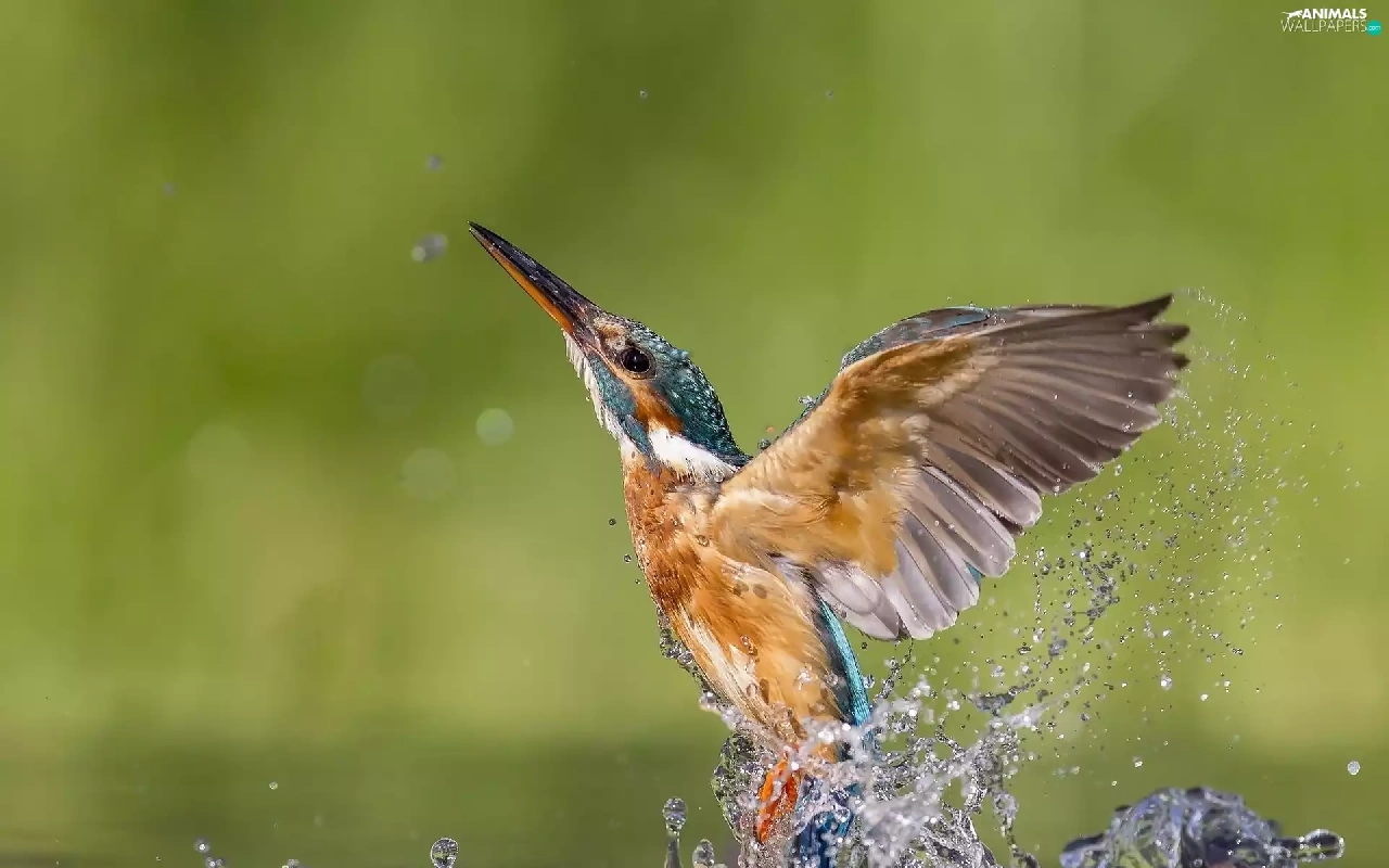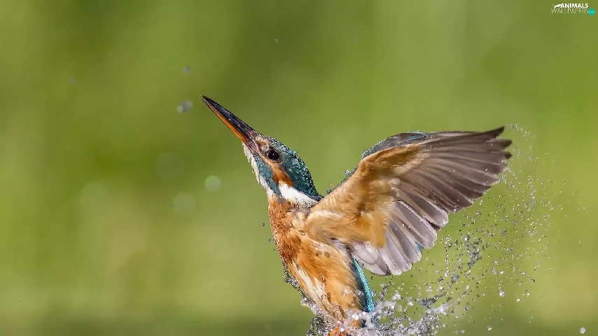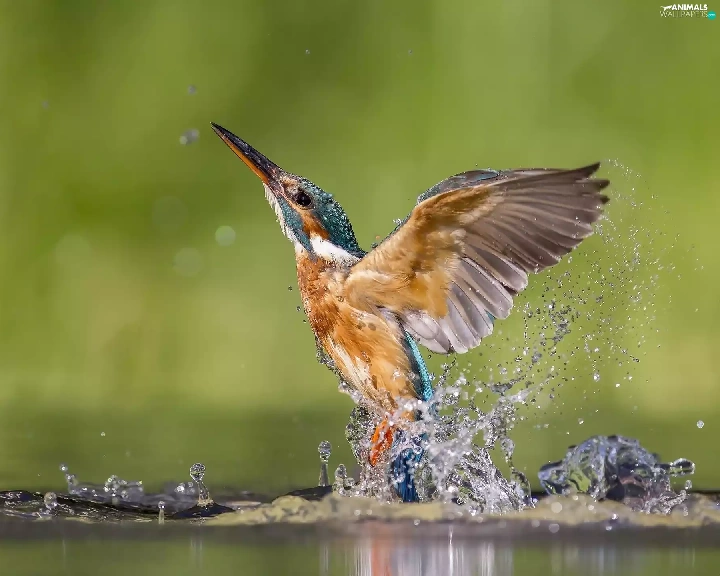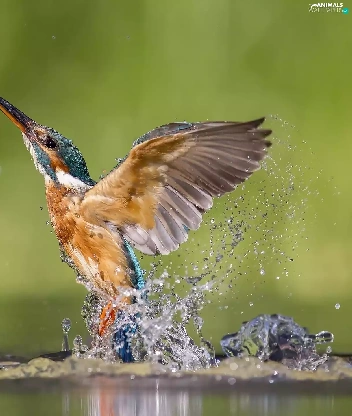 Splash, wings, Bird, water, kingfisher