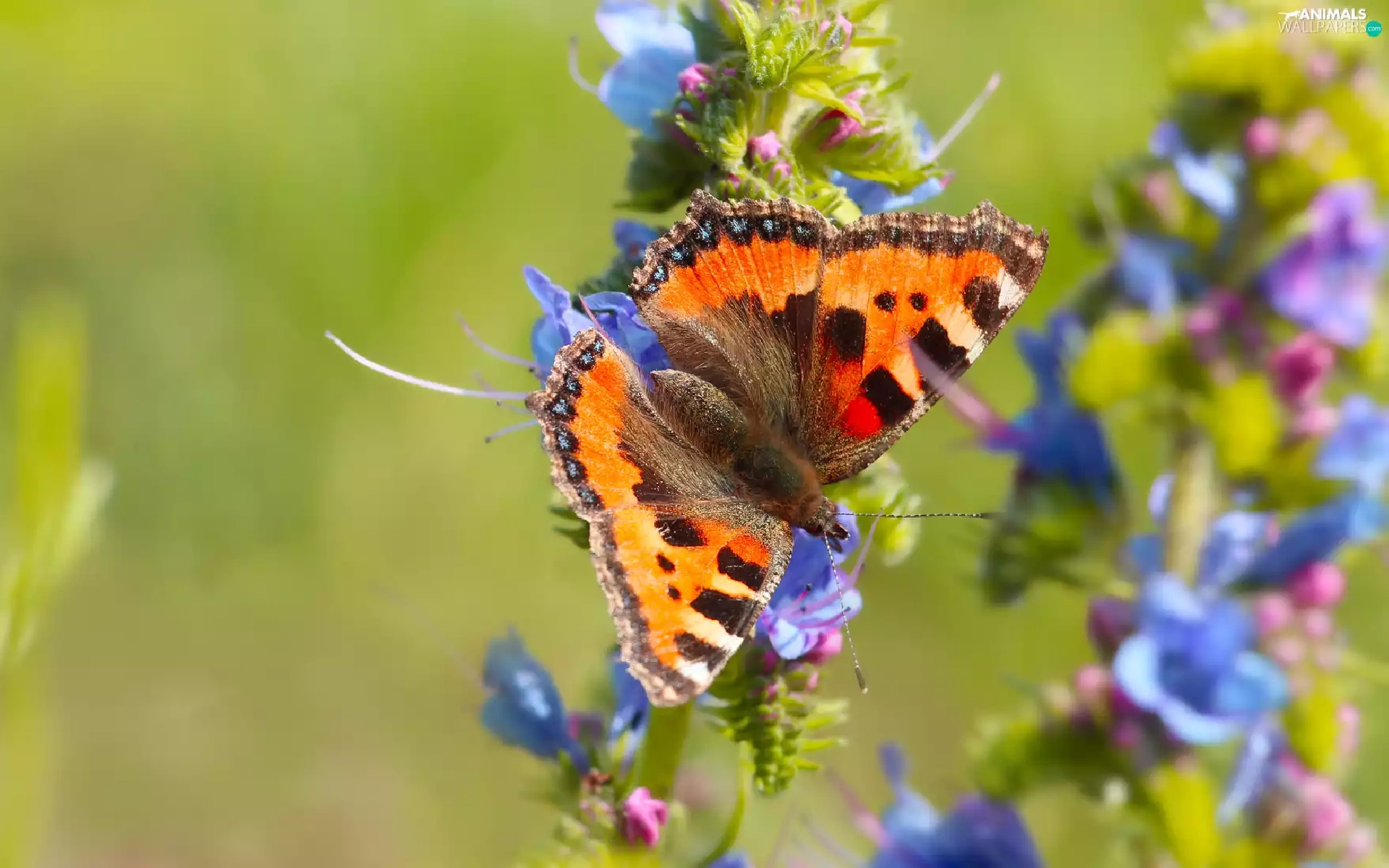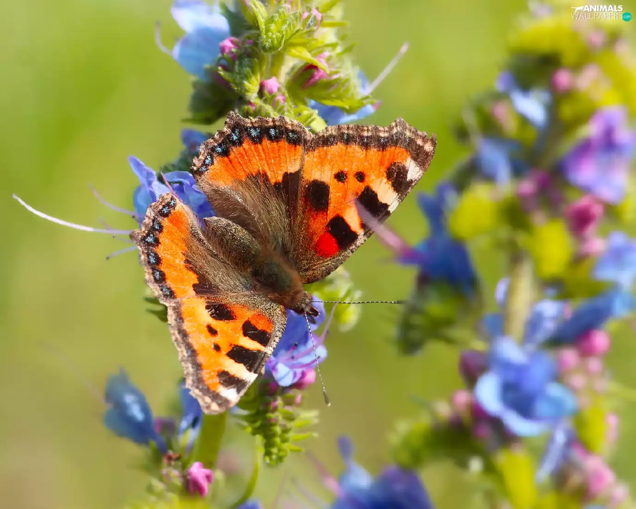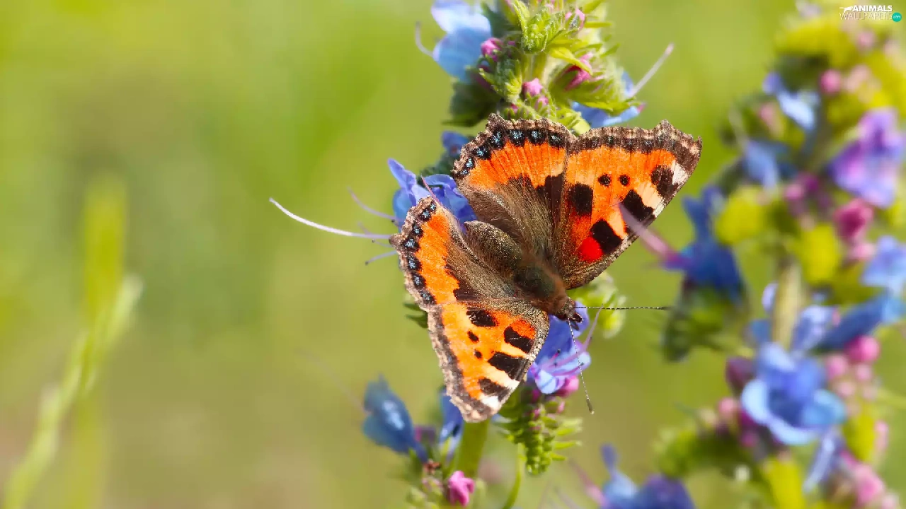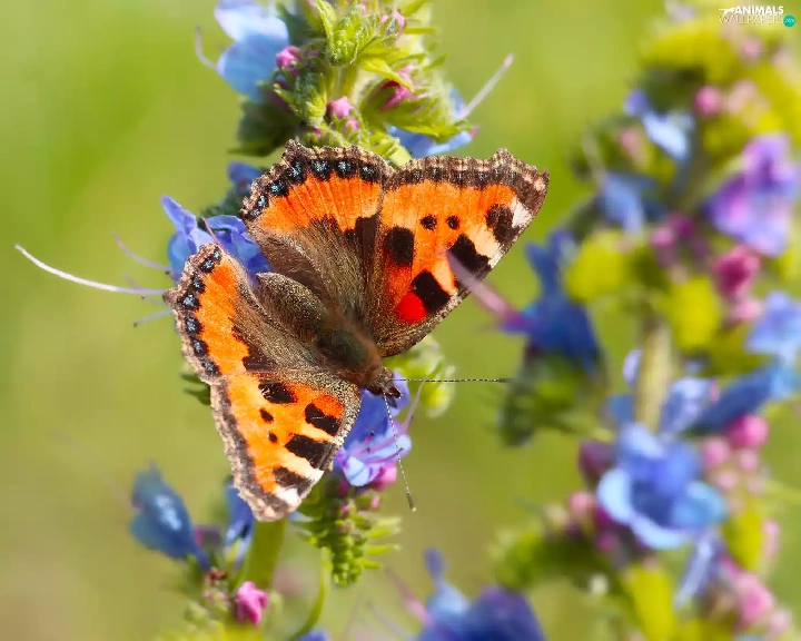 butterfly, wings, Flowers, Small Tortoiseshell