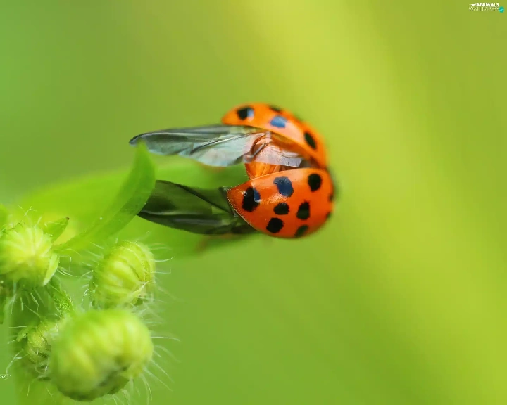 Spots, wings, Red, Insect, ladybird