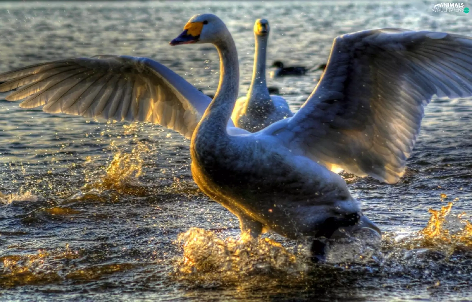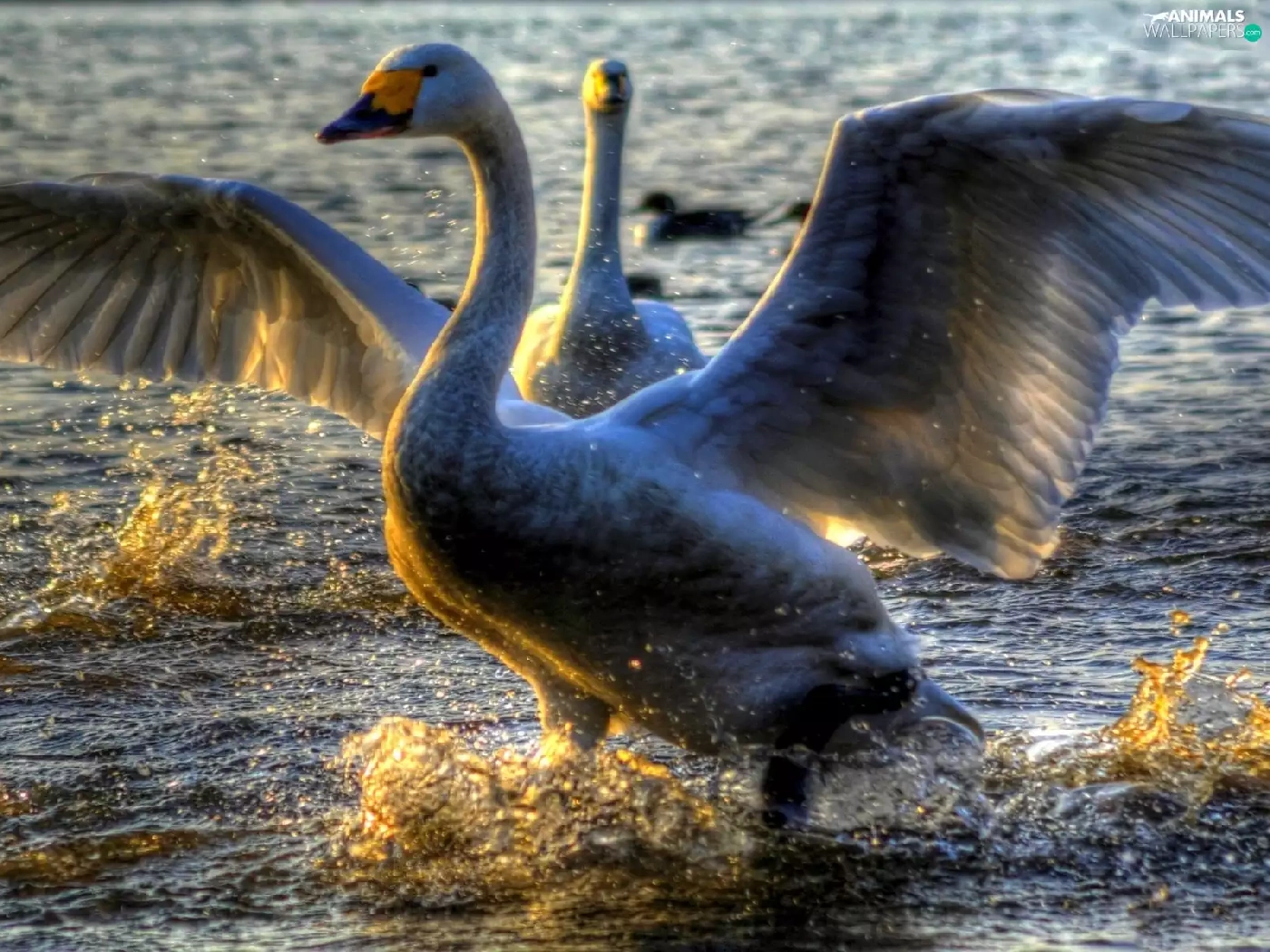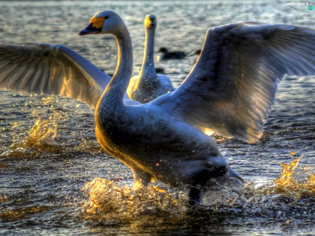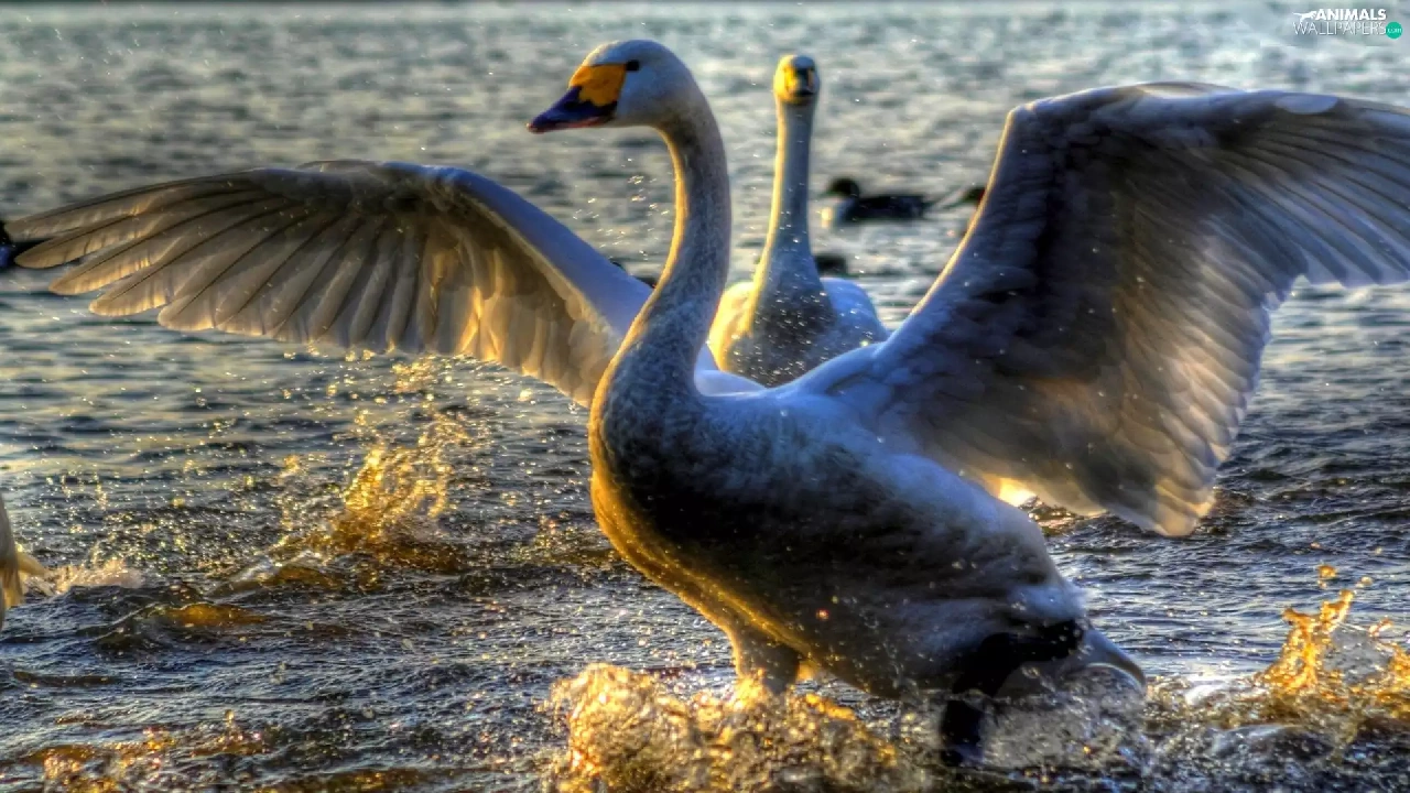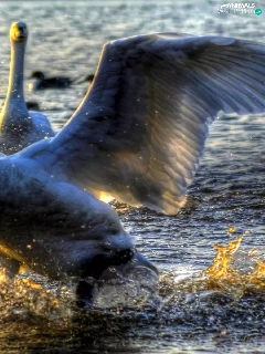 wings, water, Swan