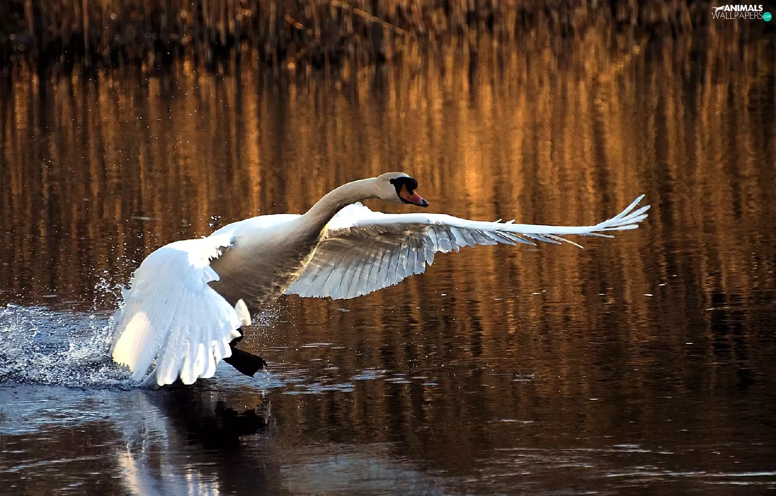 Swans, water, lake, wings