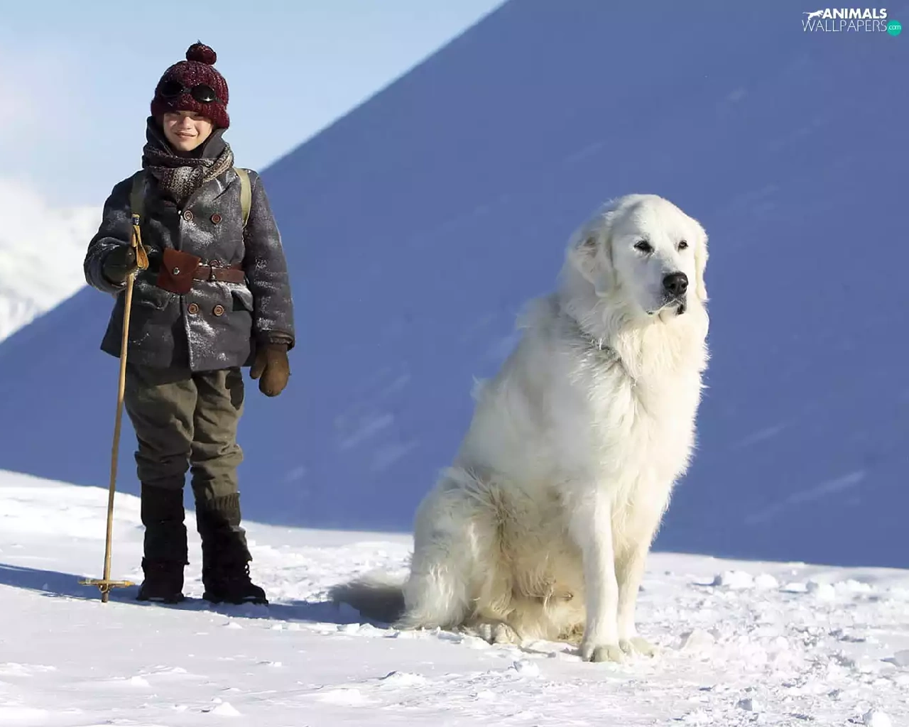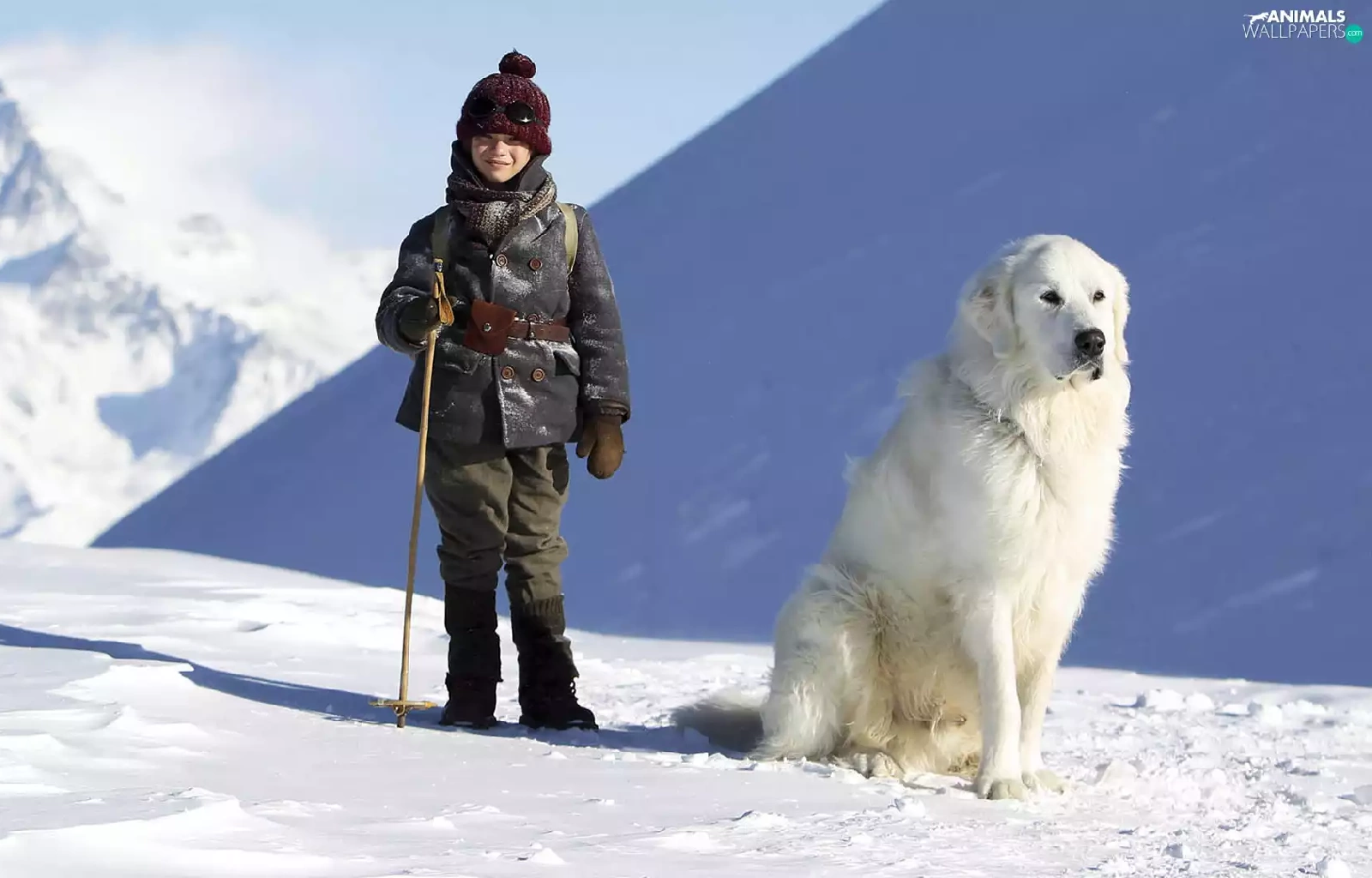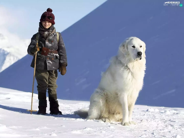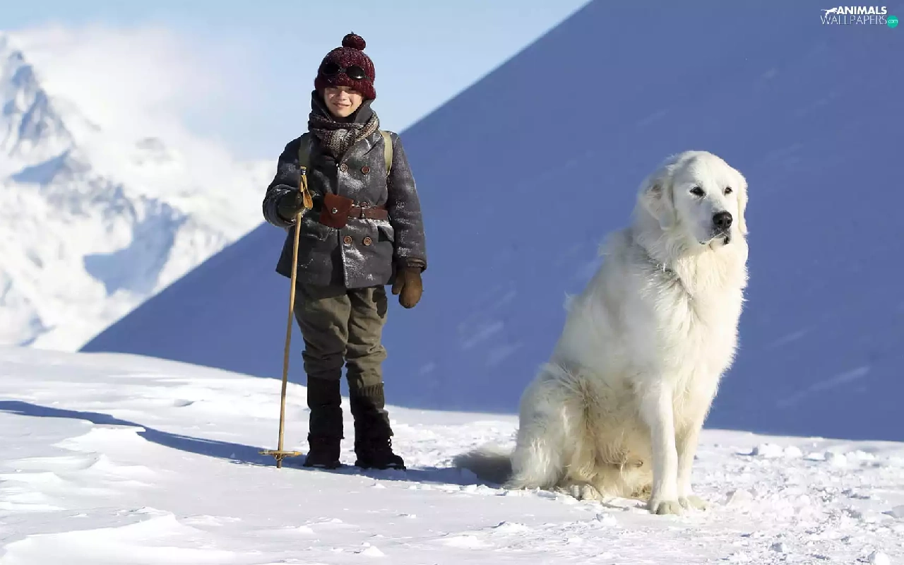 Kid, Félix Bossuet, winter, Pyrenean Mountain Dog, Alps, Belle and Sebastian, movie, Mountains