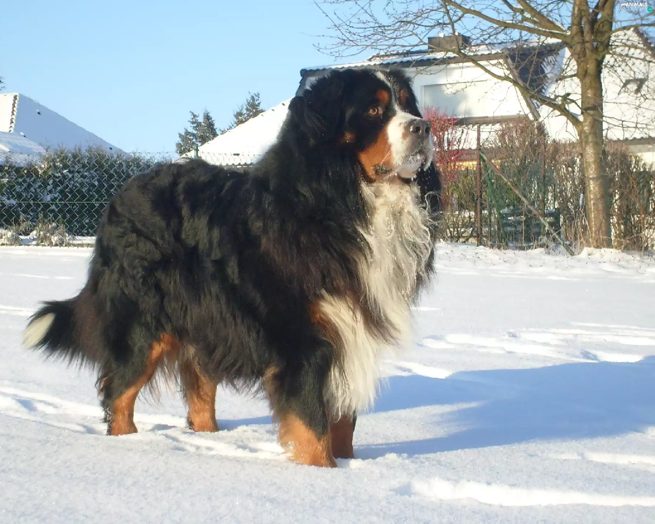 Bernese Mountain Dog, winter