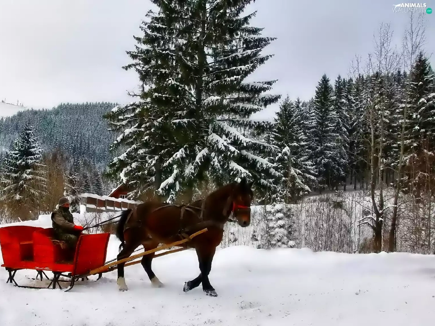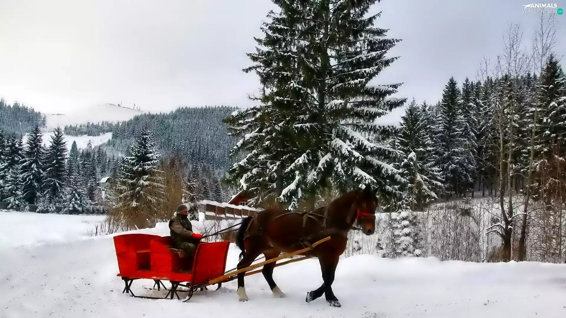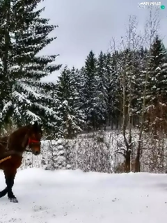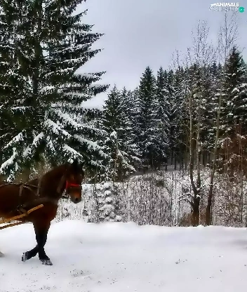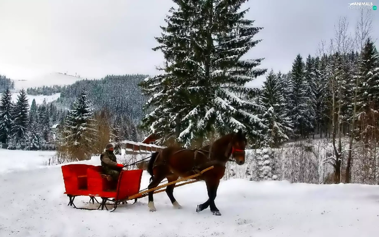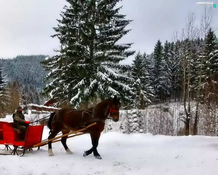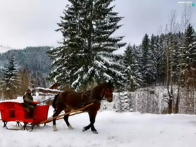 winter, Horse, chaise