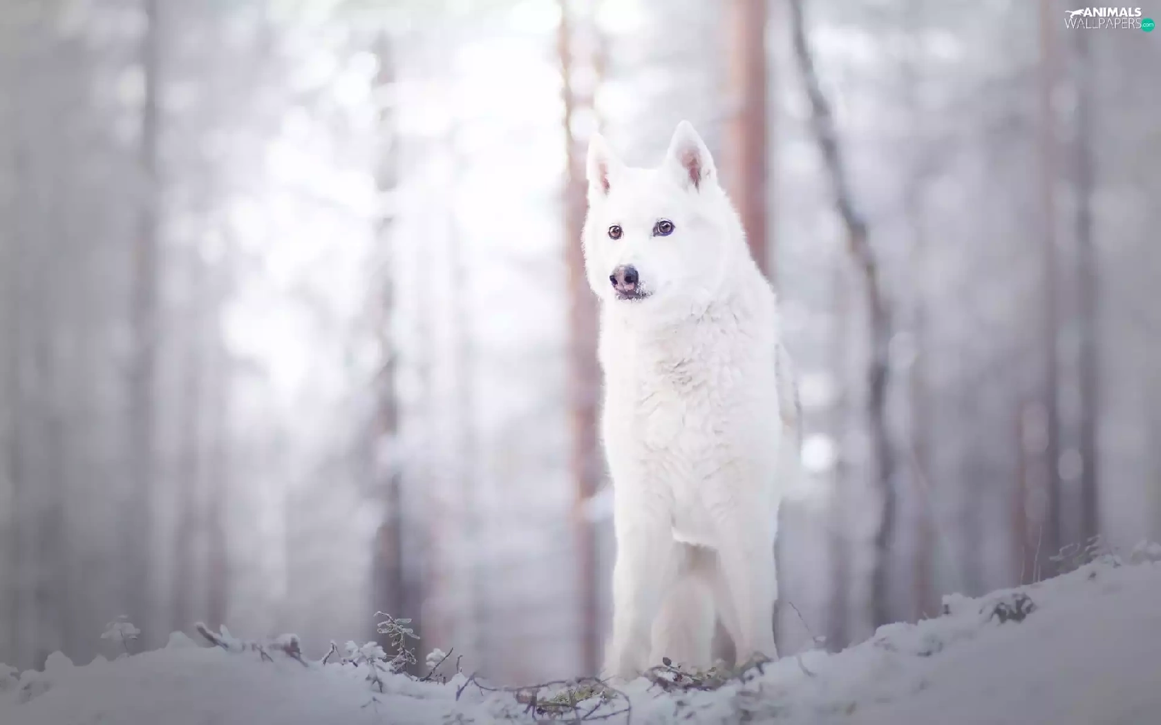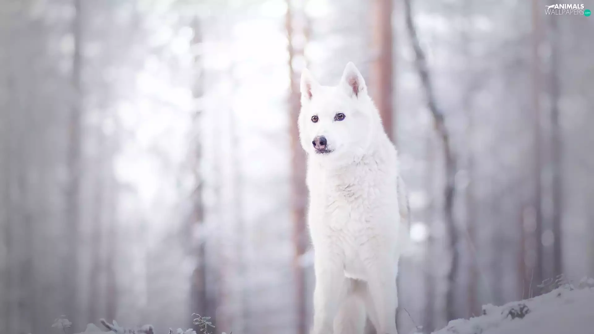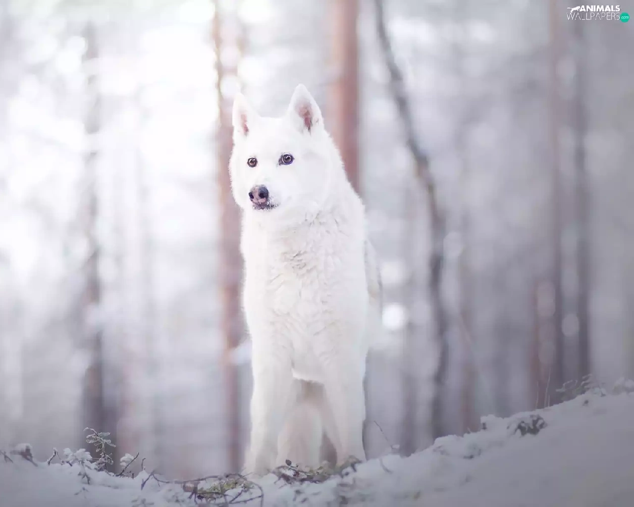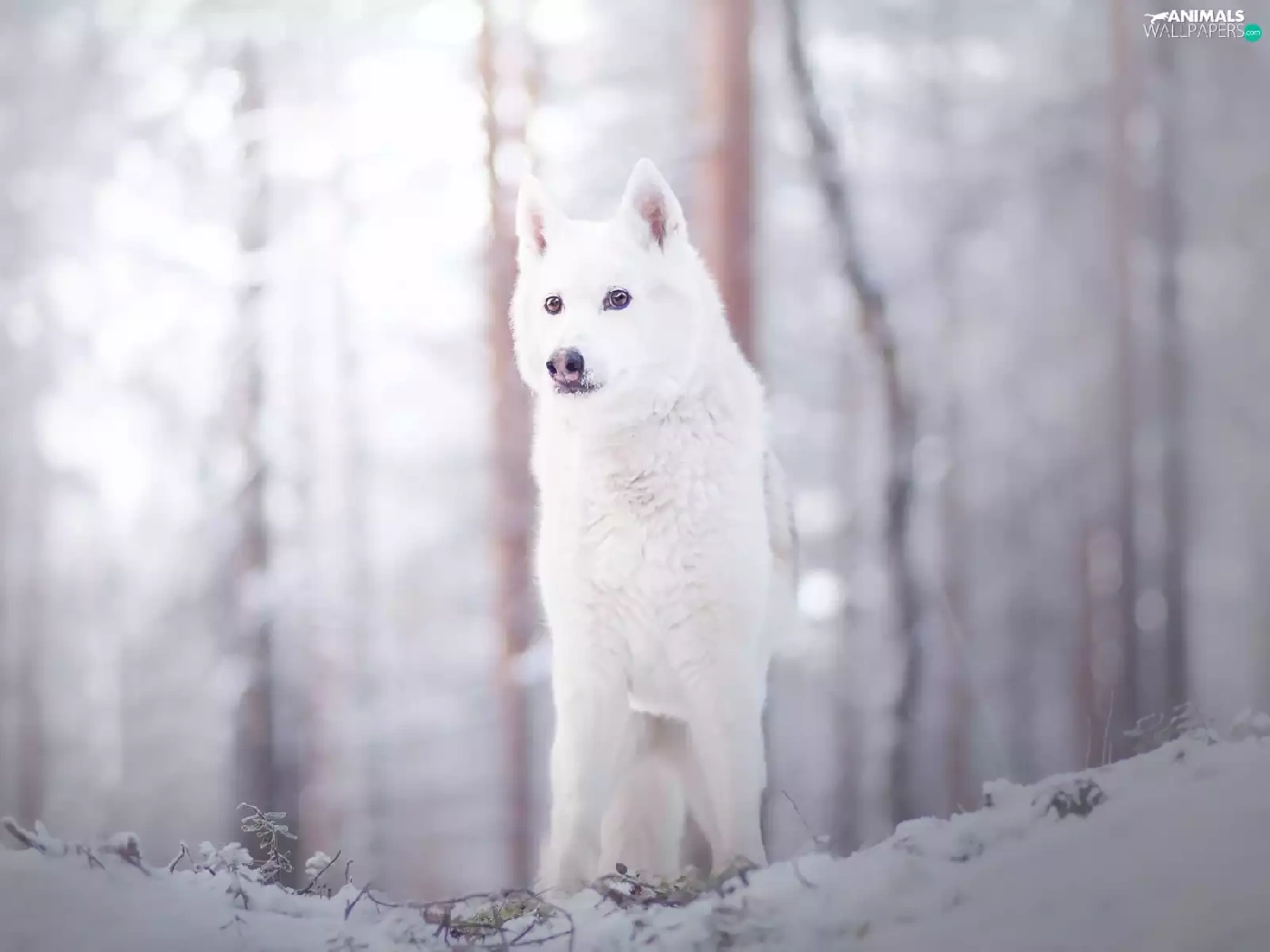 winter, White, dog