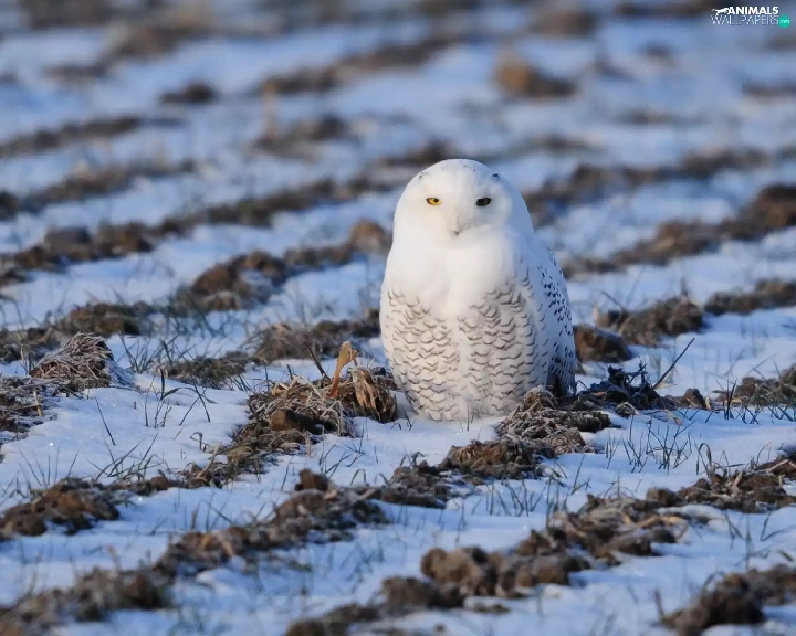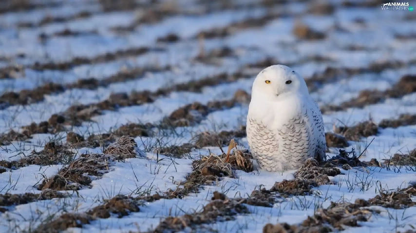 winter, owl, Field
