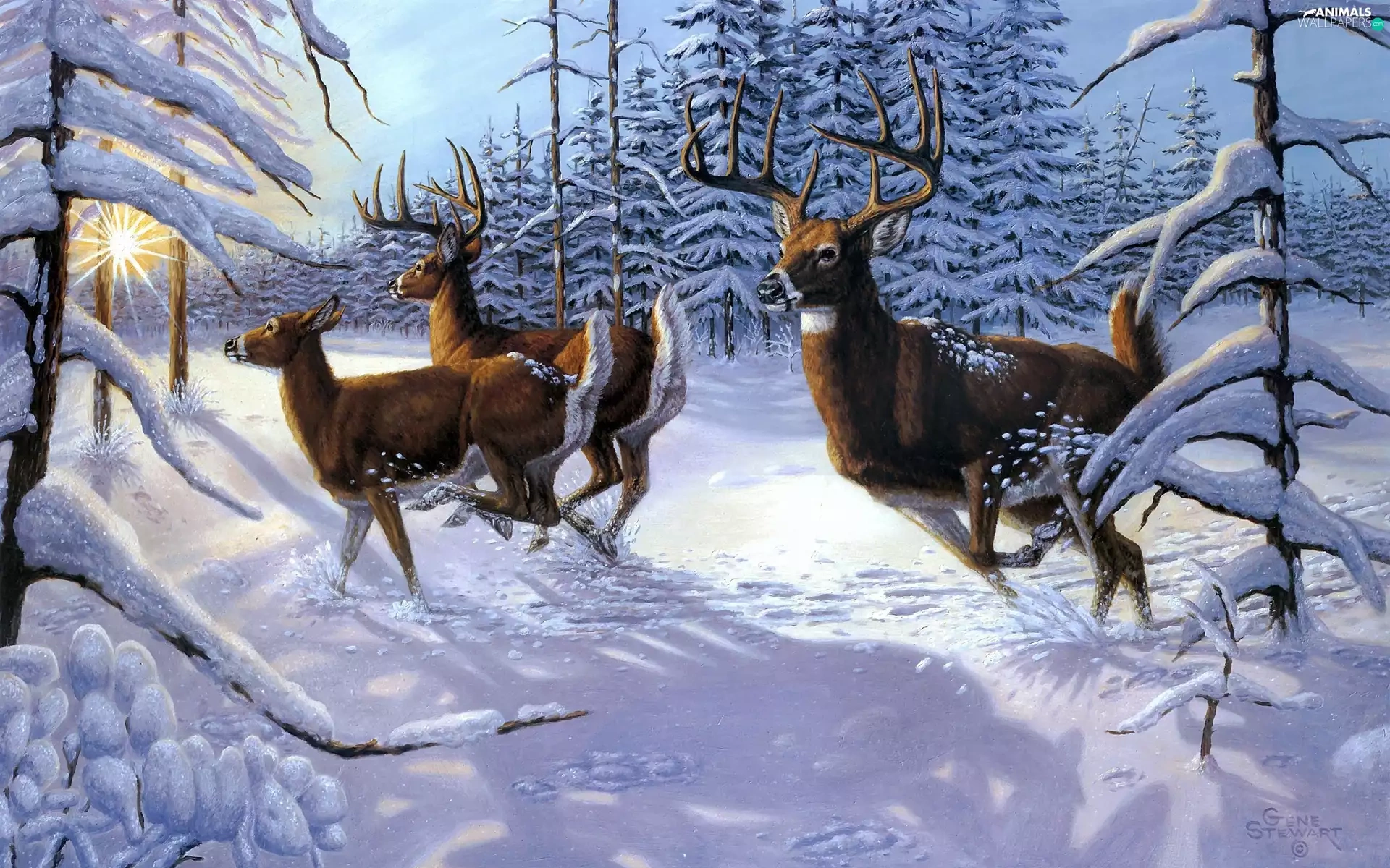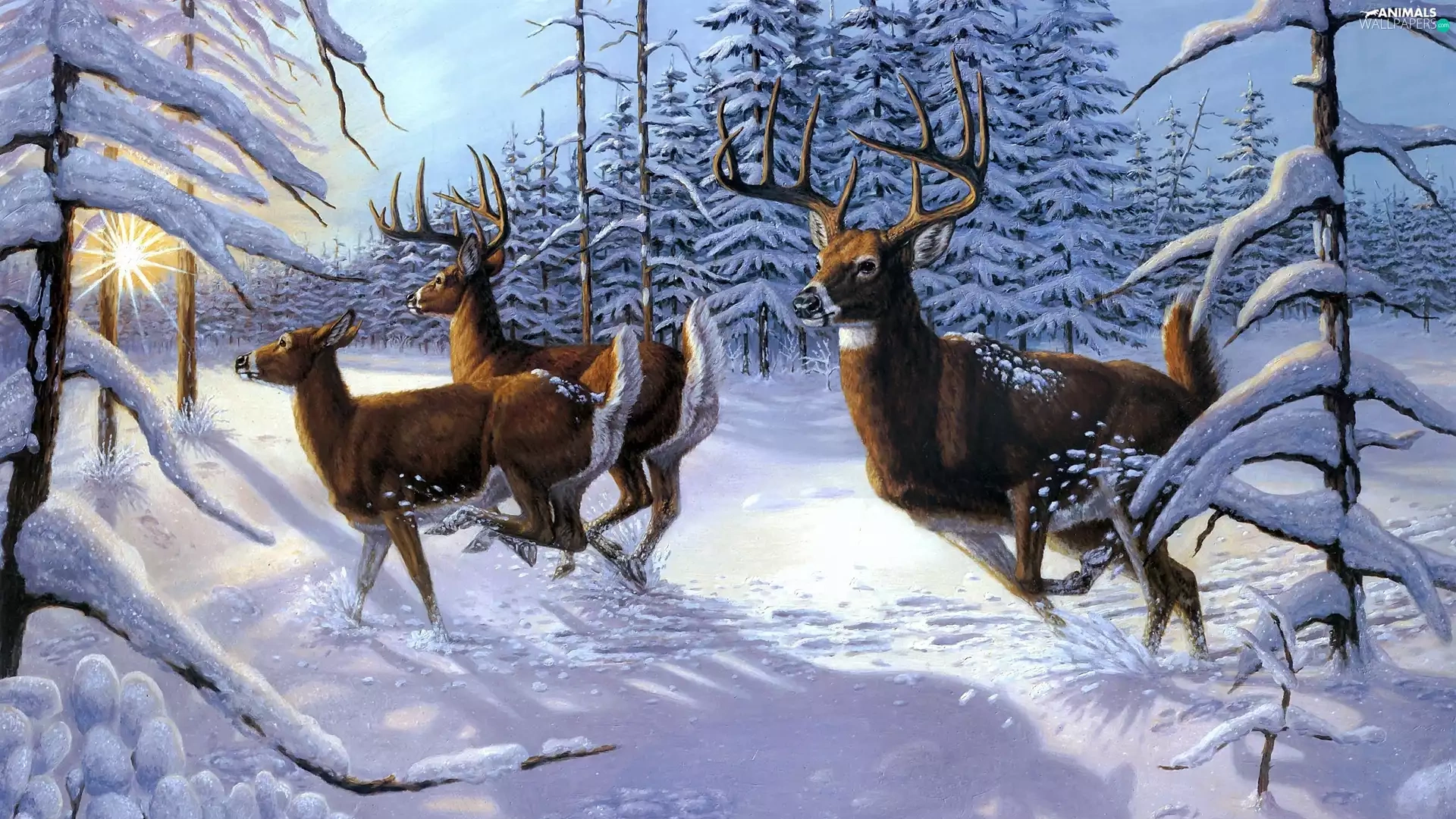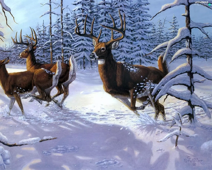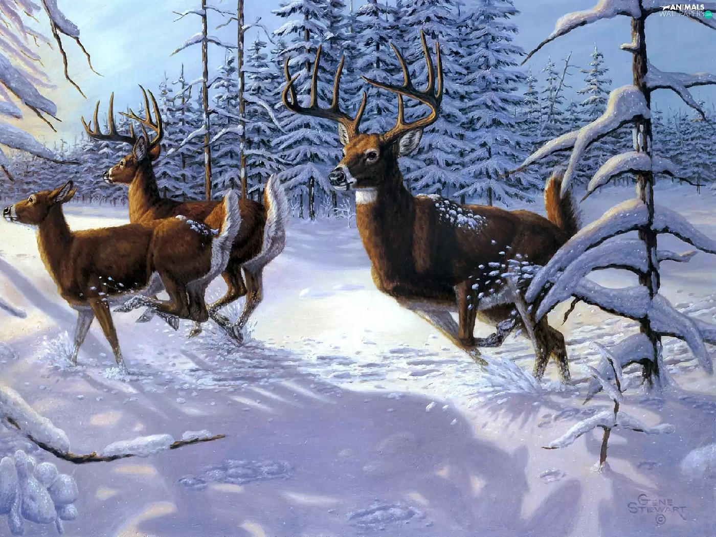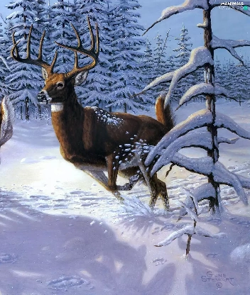 winter, Deer, forest