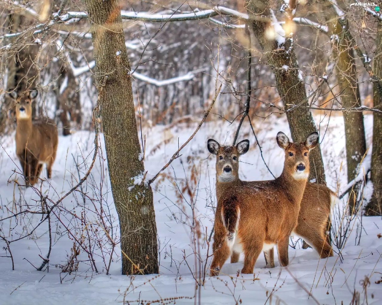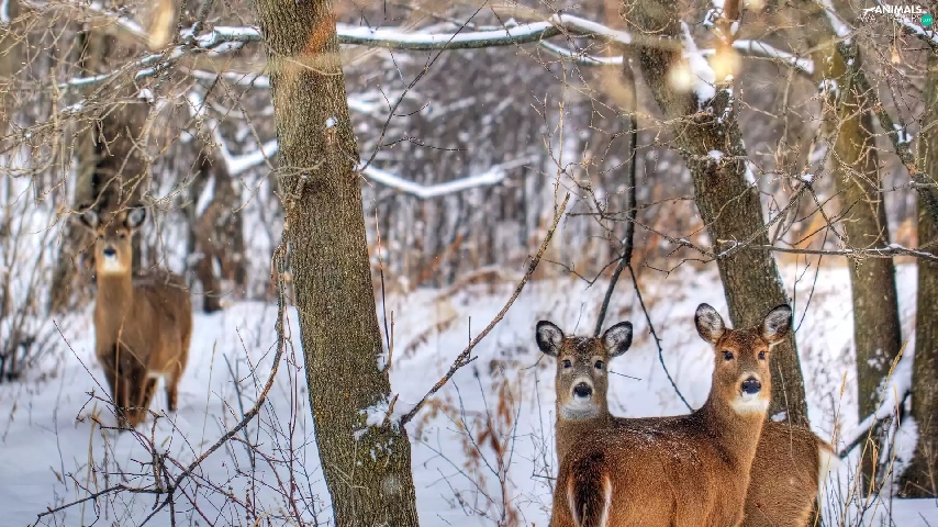 viewes, winter, forest, trees, deer