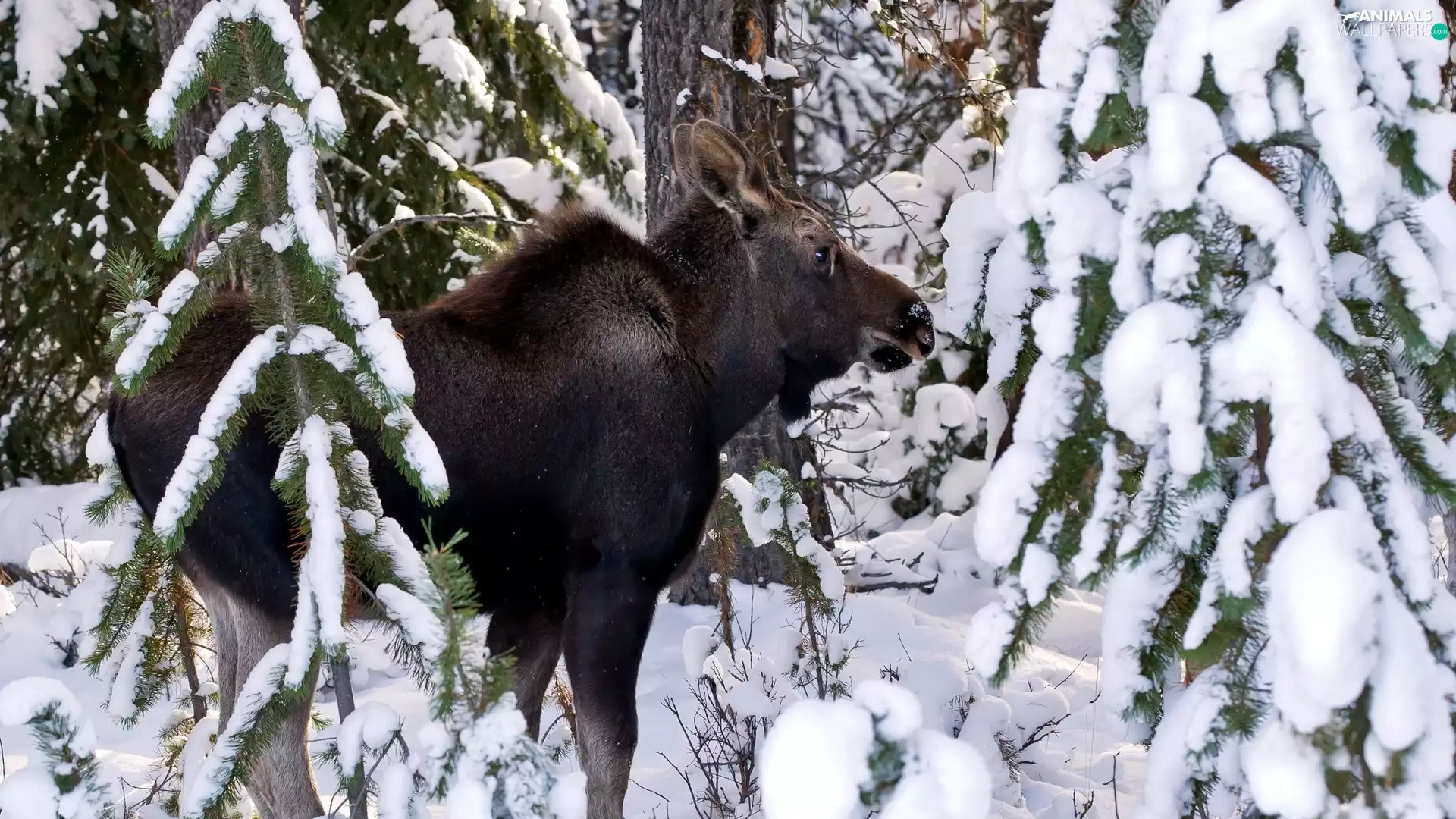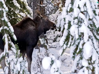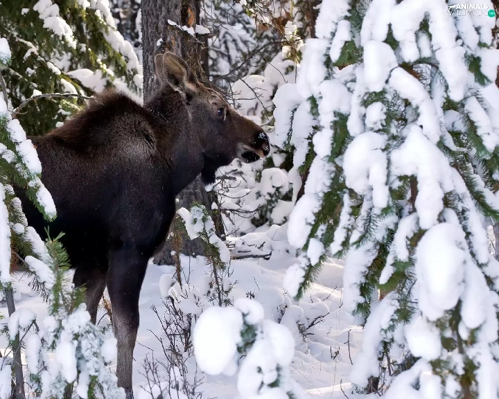 winter, moose, forest
