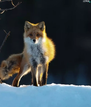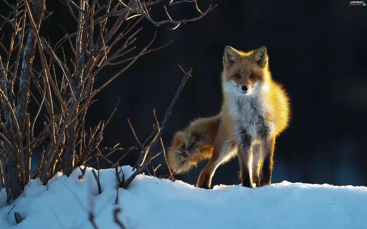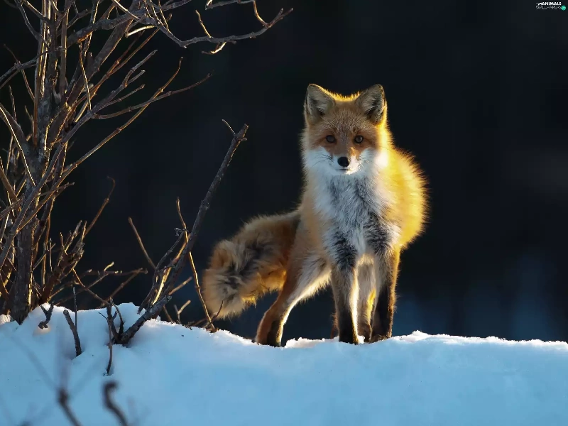 fox, snow, Bushes, winter