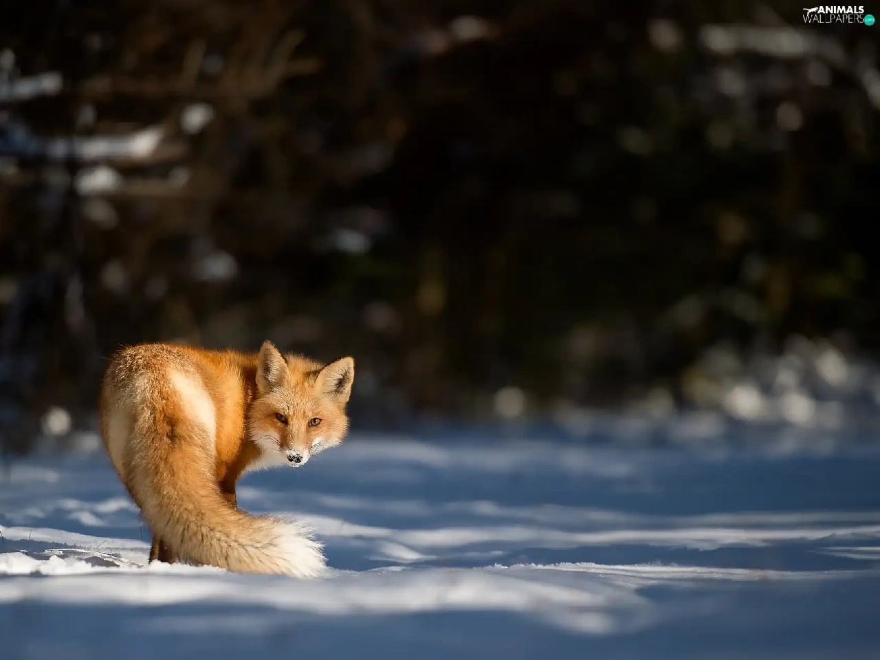 ginger, snow, winter, Fox