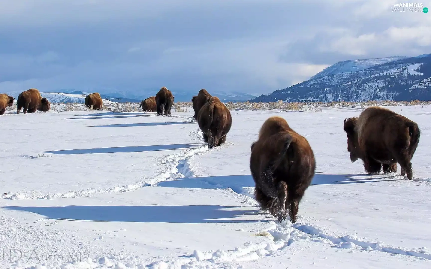 winter, bison, Mountains