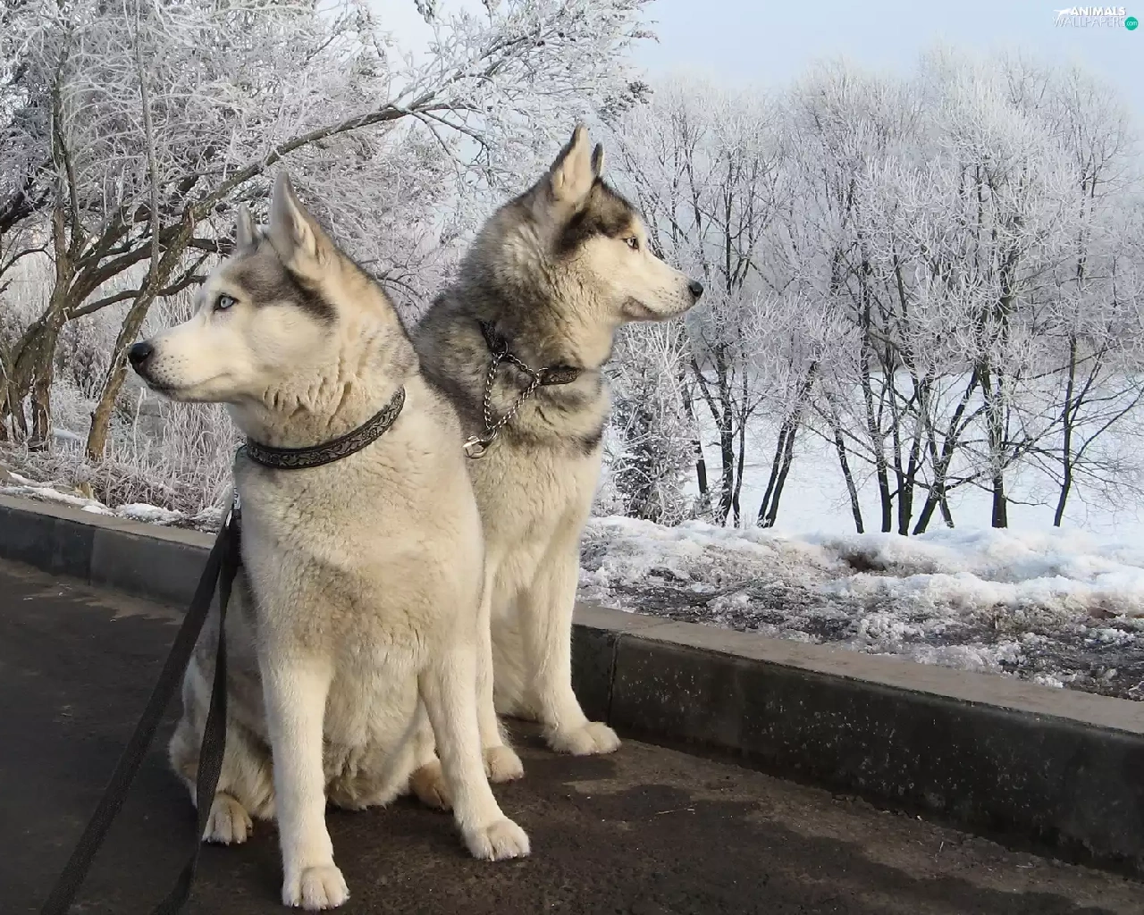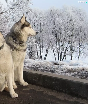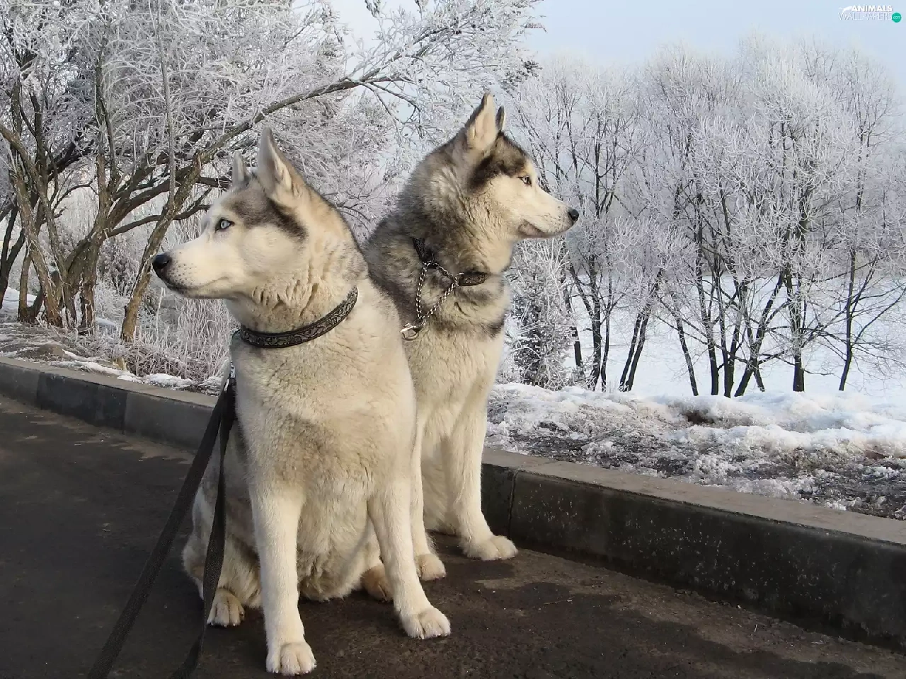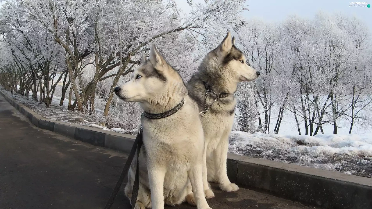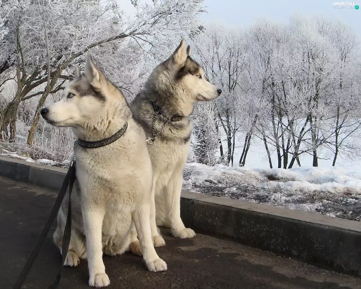 Dogs, winter, Siberian Husky, snow