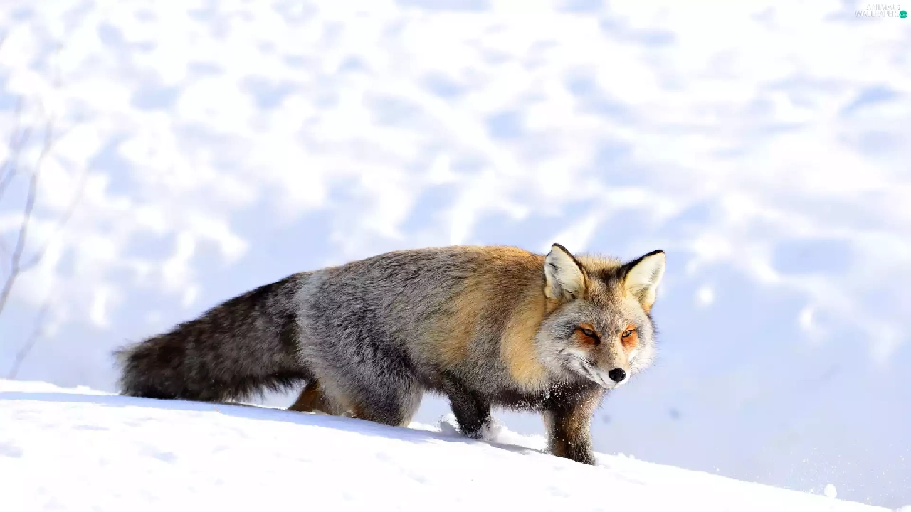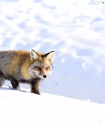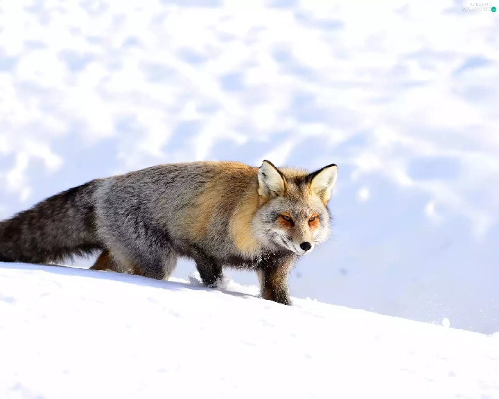 winter, Fox, snow