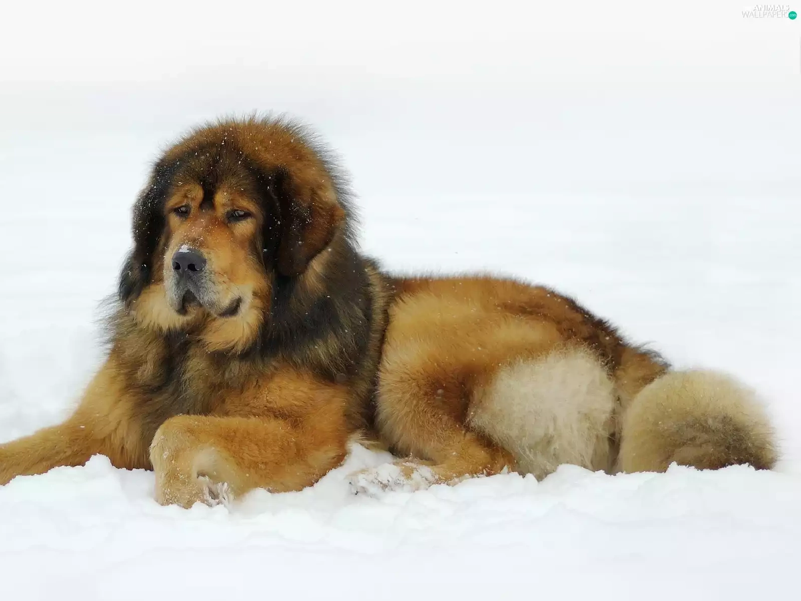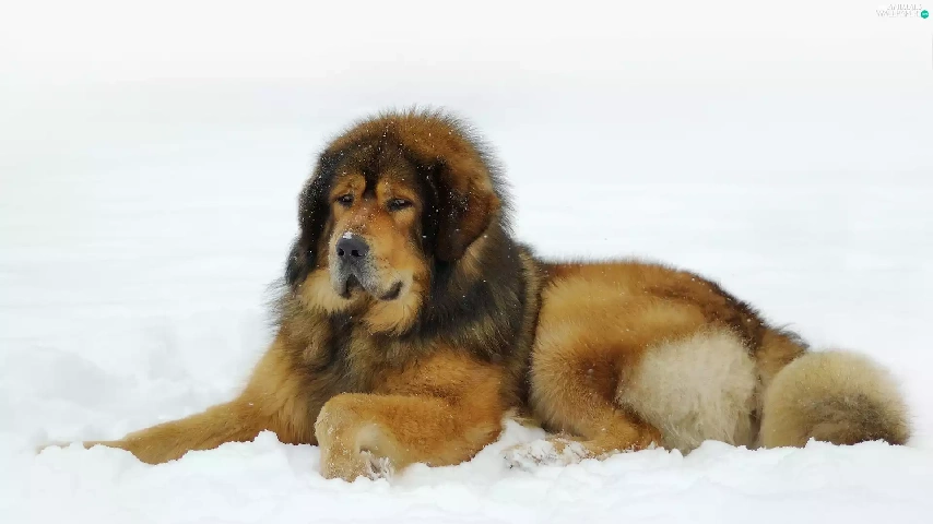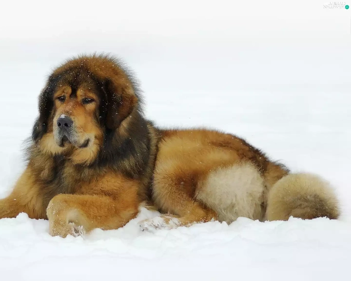 dog, winter, snow, Tibetan Mastiff